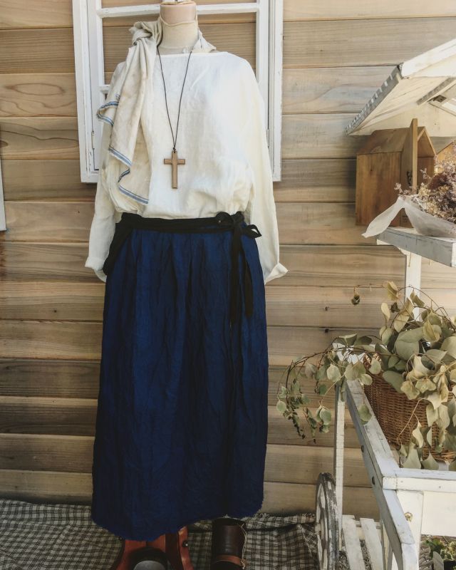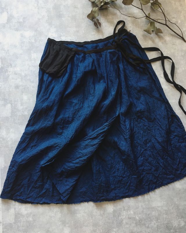 鮮やかなインディゴリネンの巻きスカートです*
