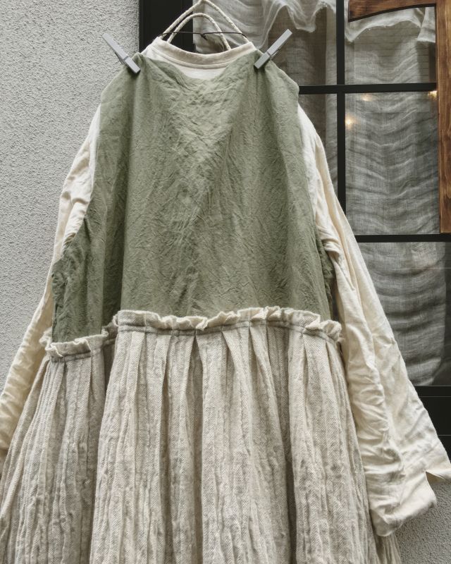 MARCHE' DE SOEUR/ウールリネンベストワンピース・オフ×若草 [POL181133]