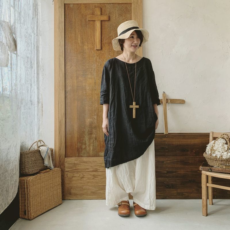 また上の深ーい、ストンとしたサルエルバギーパンツ*