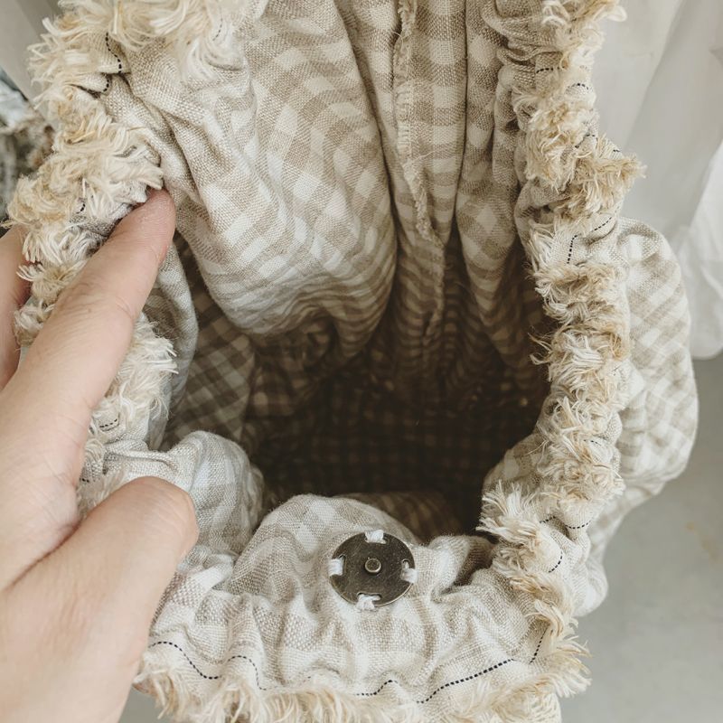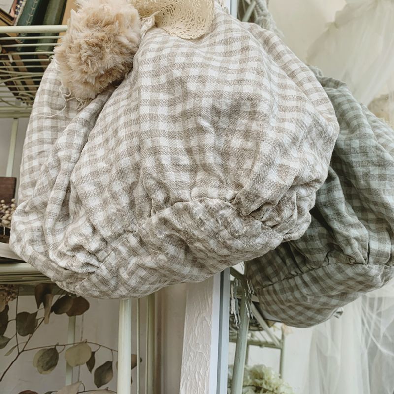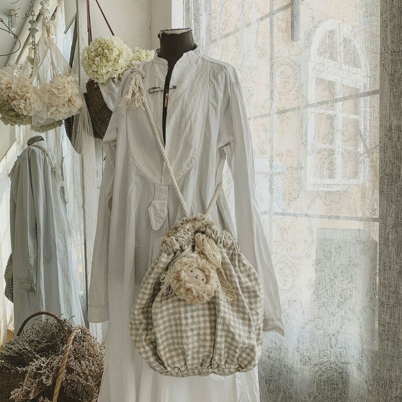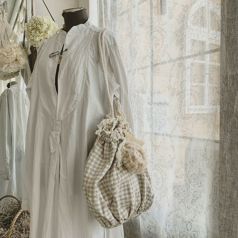 素材:ハーフリネン・アンティークレース・スケキヨ・革