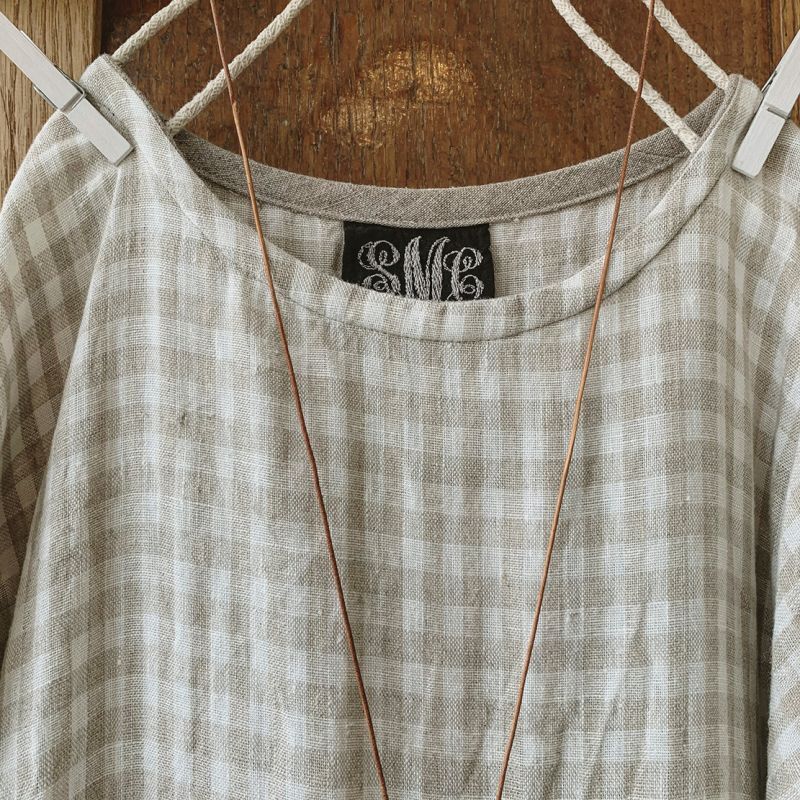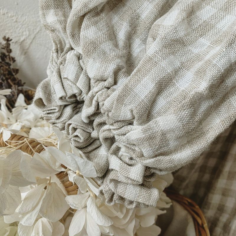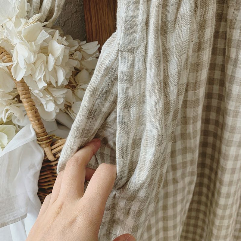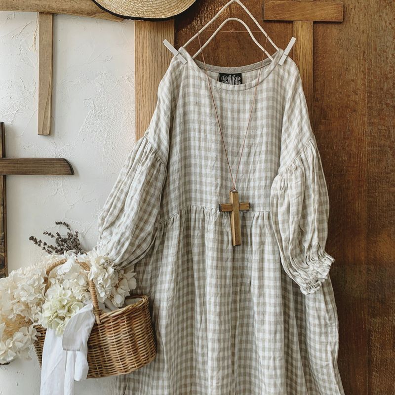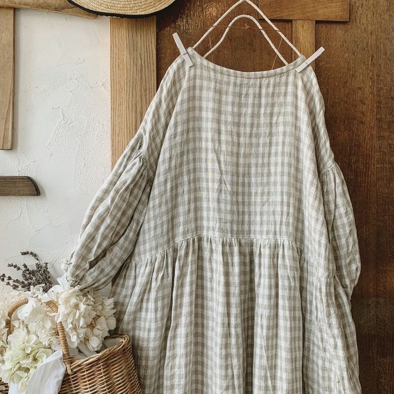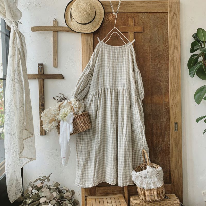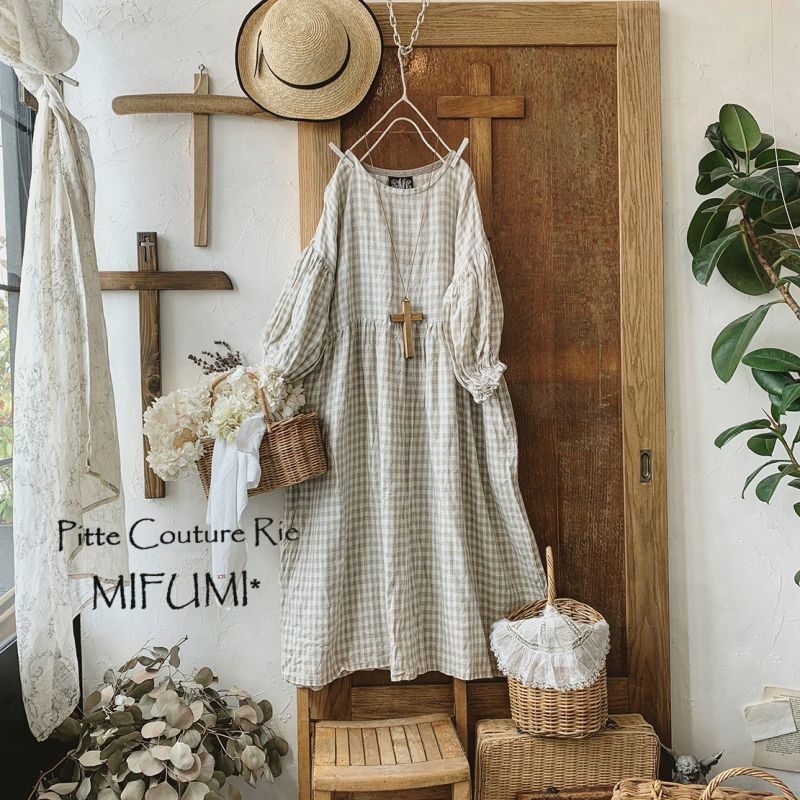 mifumi/ドロップショルダーボリュームpuffワンピース・生成×白ギンガム [MIF210409]