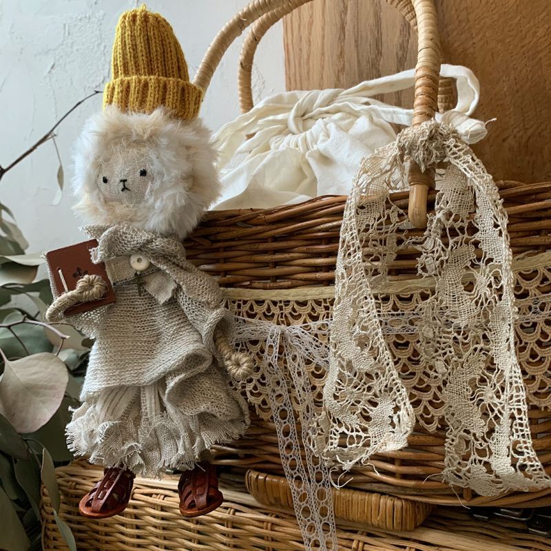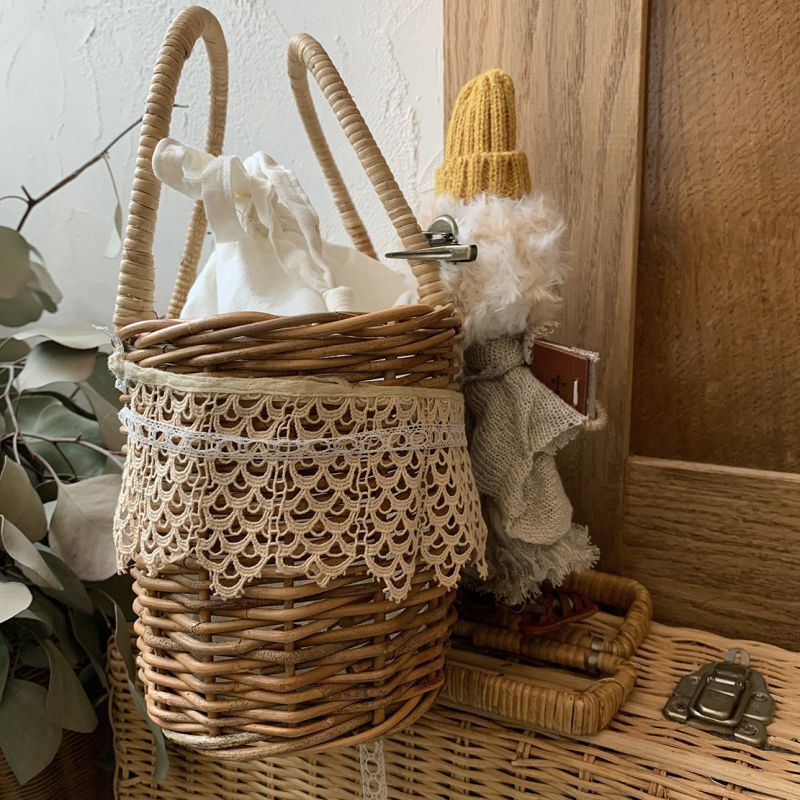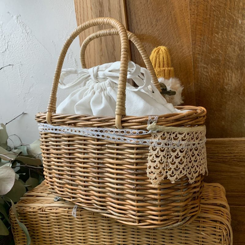 かごバッグにはアンティークレースをたっぷりつけました。