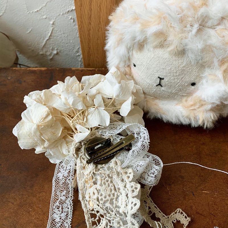アンティークレース、アンティークボタンなどを使った