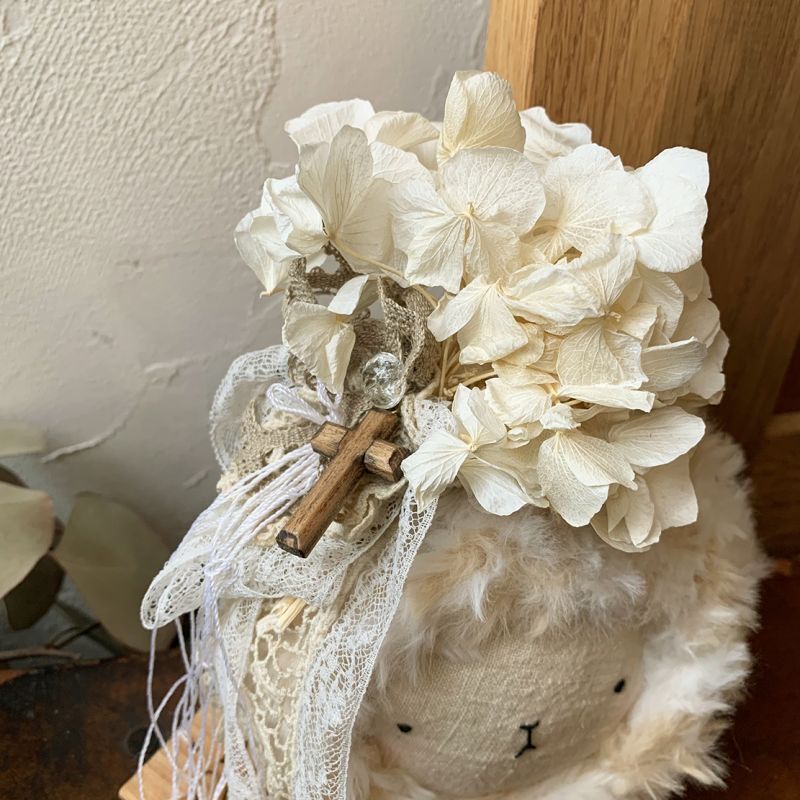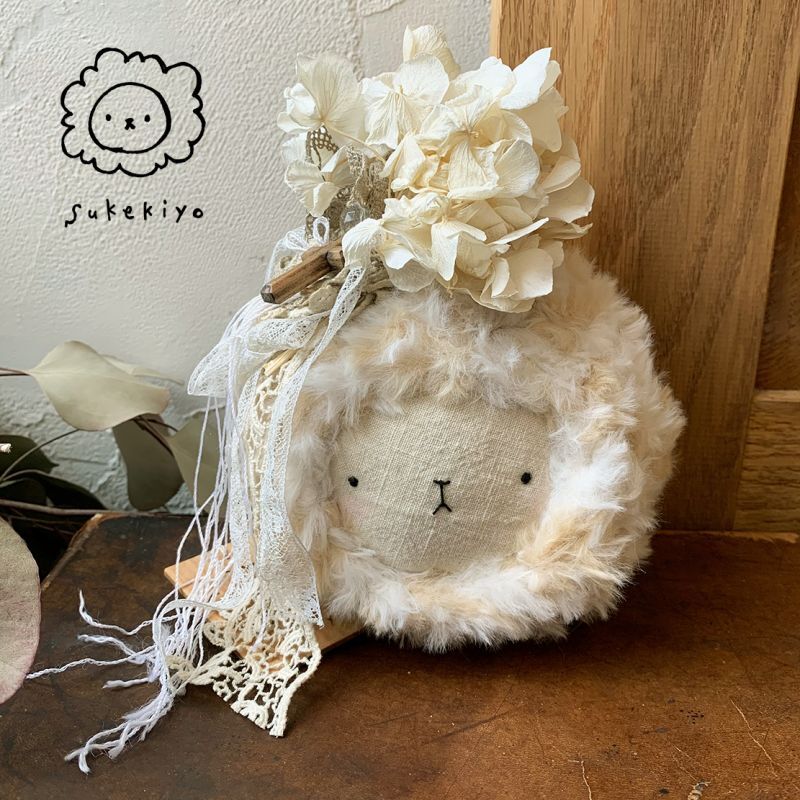 まるいスケキヨのあたまに、プリザーブドフラワーと