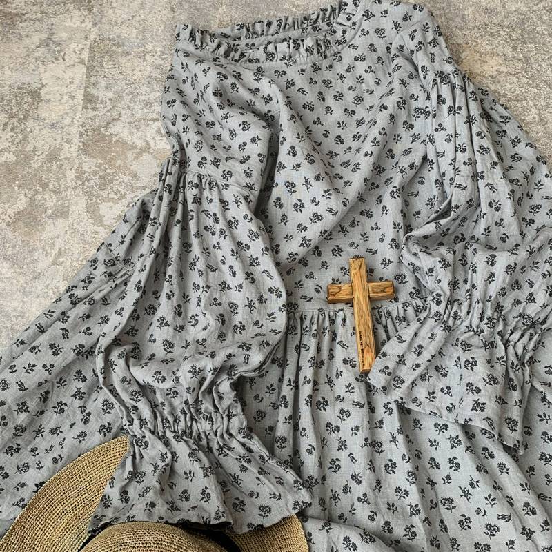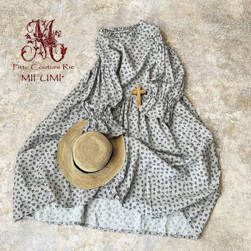 mifumi/フリル襟リリィのワンピース・プチブーケライトグレー [MIF210420]
