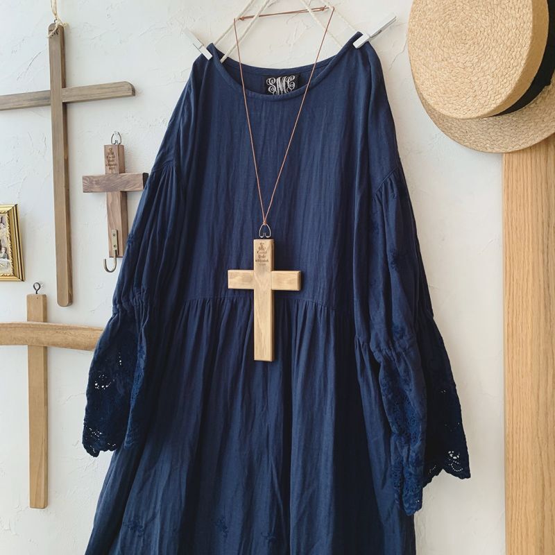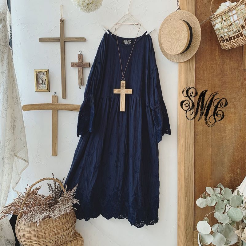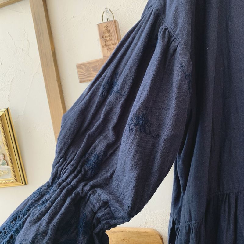 mifumi/Wトロンのワンピース・ネイビーベル刺繍 [MIF210828]