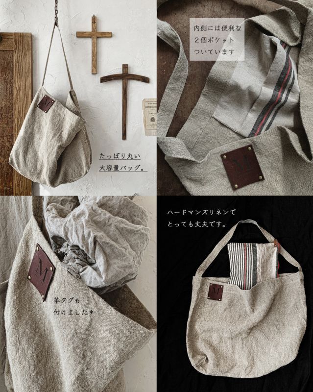 2.ハードマンズリネン・革タグ付ショルダーバッグ