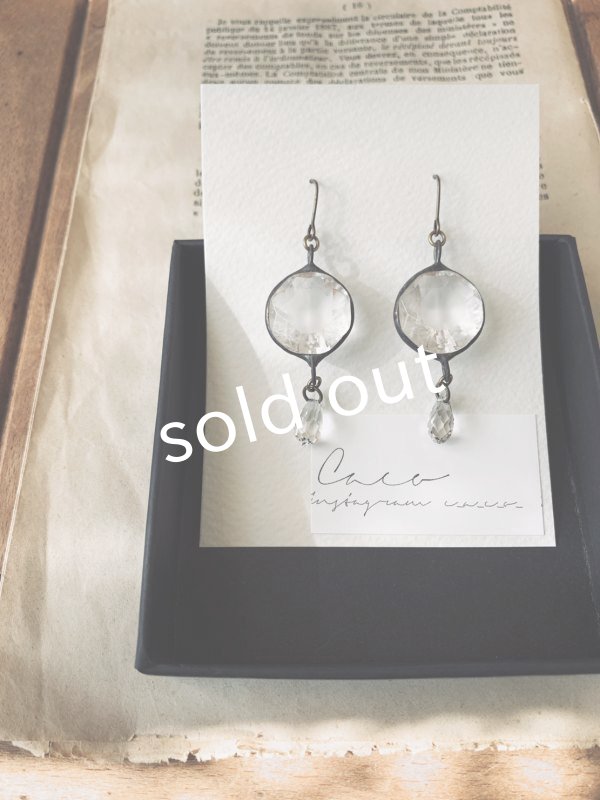 caco grass works/ヴィンテージガラスボタンのピアス・A [CAC220417]