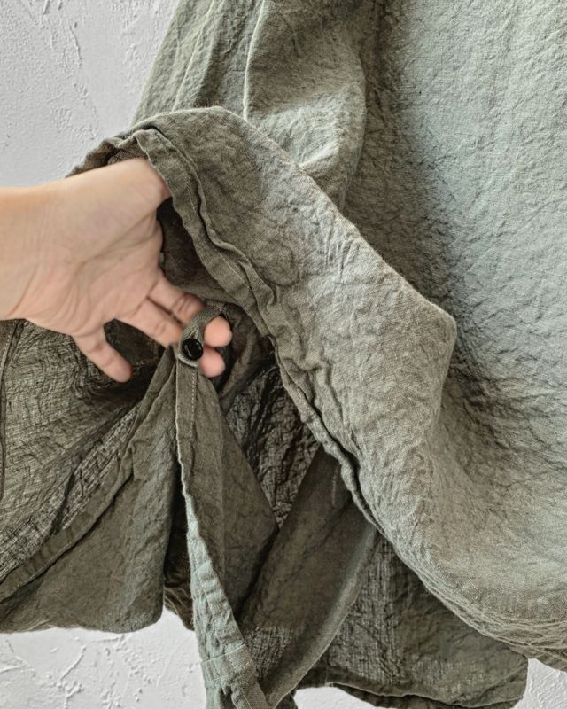 画像はボタンを留めてバルーン状にしています。サイドを垂らして着ても素敵ですよ。