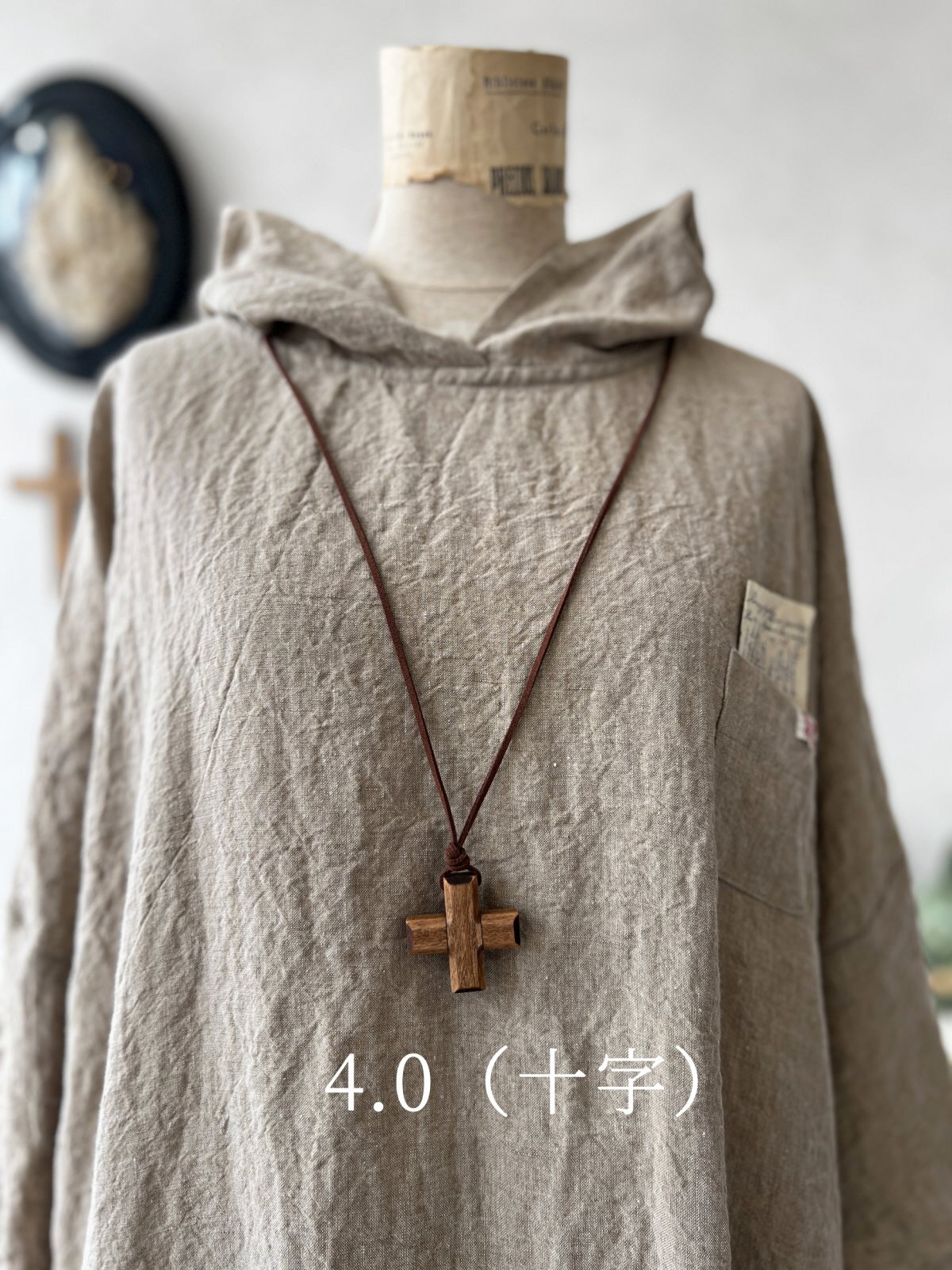 当店オリジナルハンドメイド・木の十字架ネックレスです。