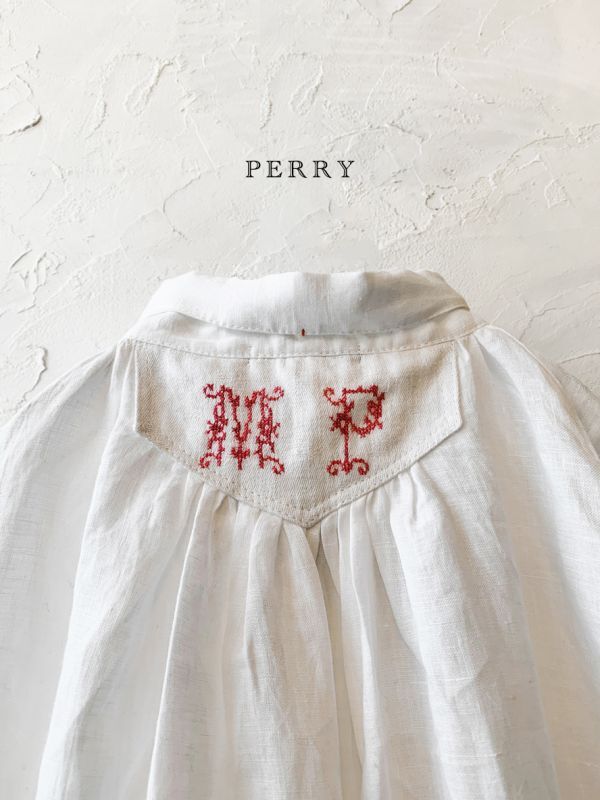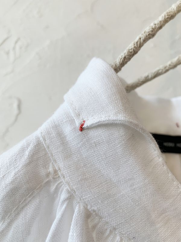 襟元などアクセントに赤糸のステッチが所々に入っています。