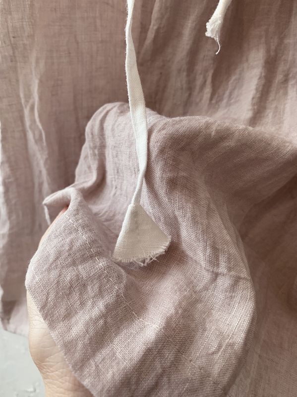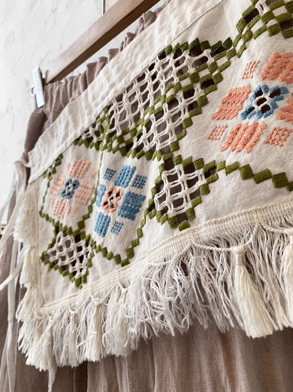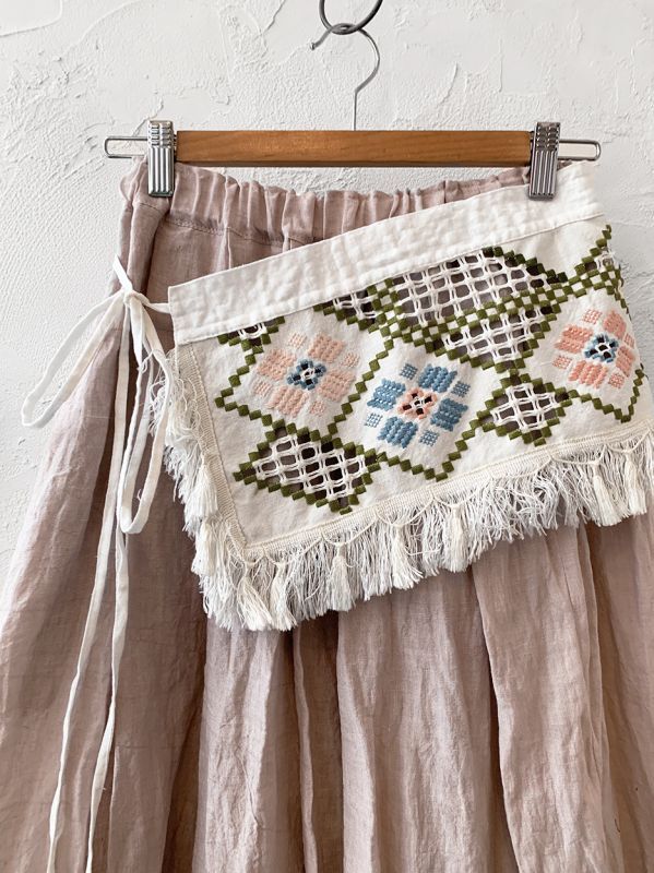 ヴィンテージのステッチクロスをタブリエにあしらったスカート。