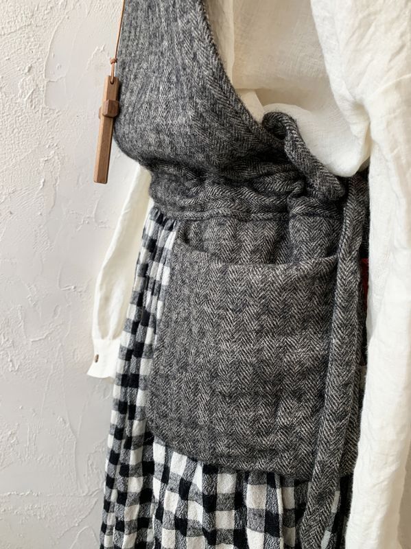 身頃とポケット&リボンがシェットランドウールへリンボーンのチャコール、