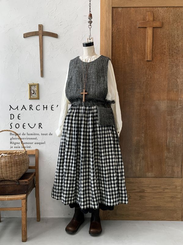 MARCHE' DE SOEUR/バッククロスワンピース・へリンボン×ギンガム [MDS231202]