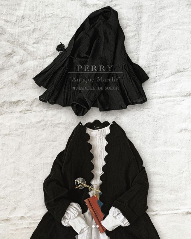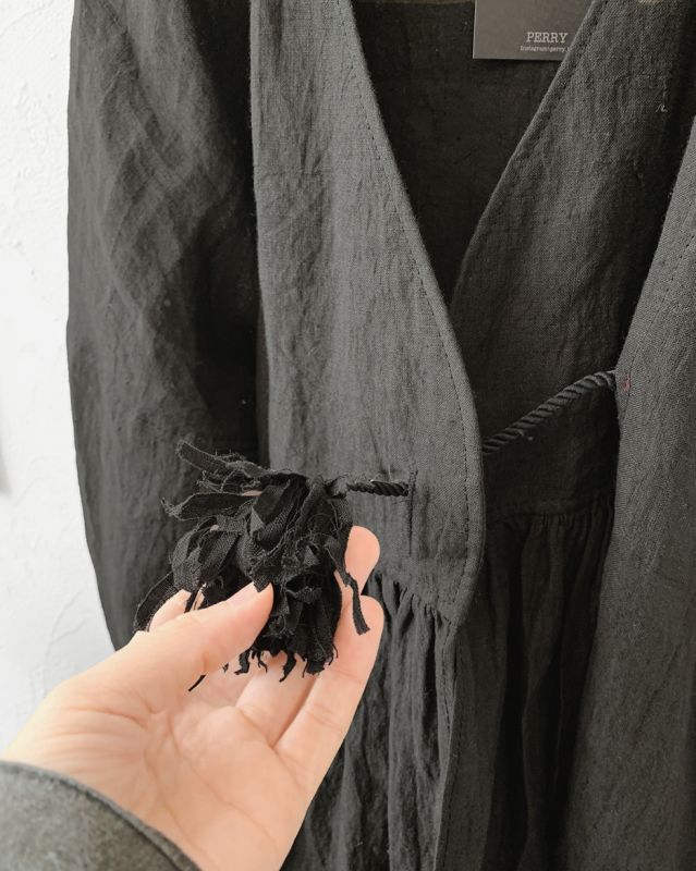 前開きで、ボンボンを通してフロントで留めるデザインです。