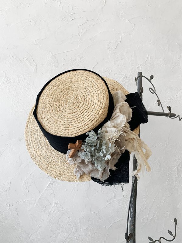 pollenbienco/プリザーブドフラワーの帽子・黒 [POL240601]