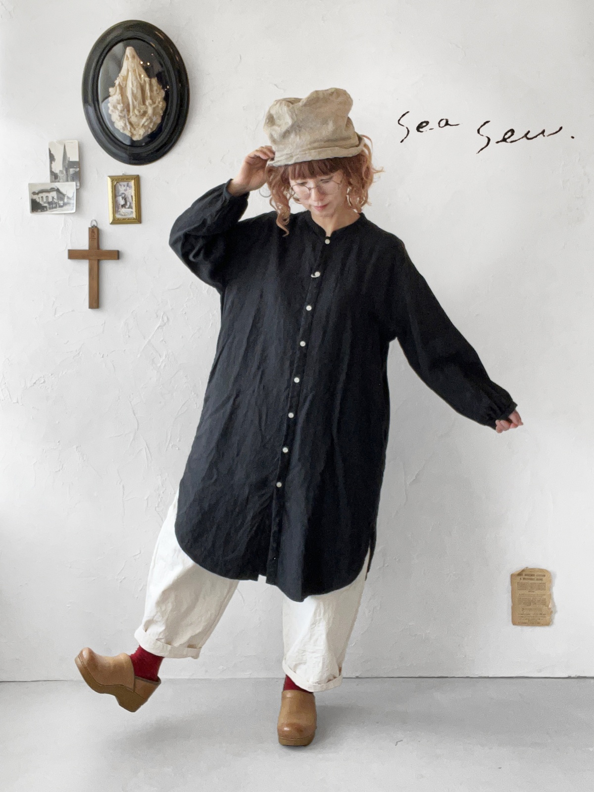 seasew./214 フレンチリネンチュニックジャケット ・ブラック [STI250808]