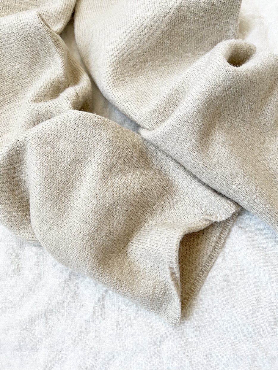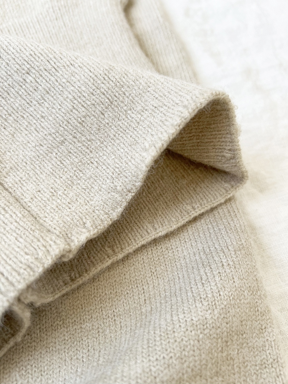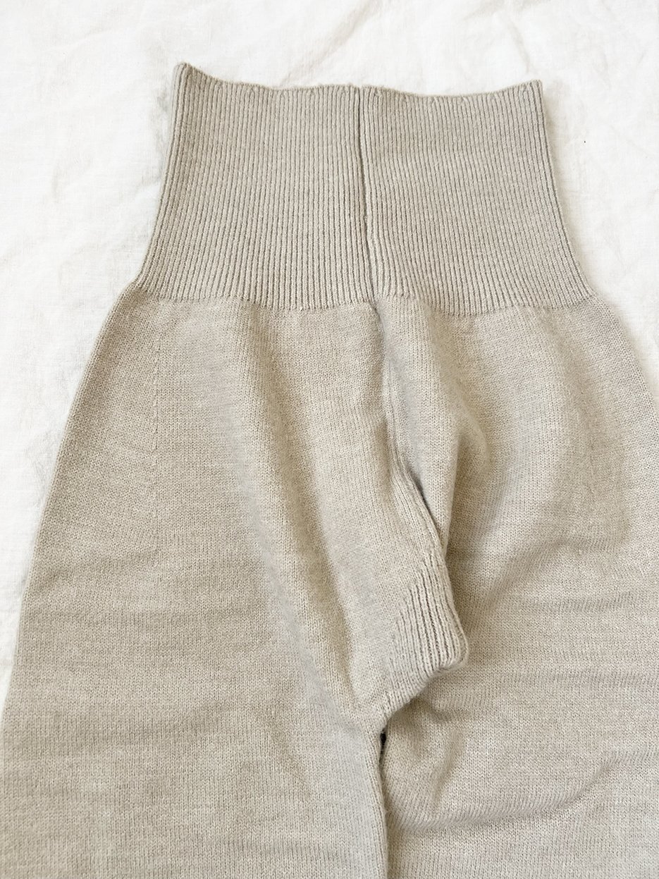 おなかをすっぽり暖めてくれる肉厚のニットパンツ。