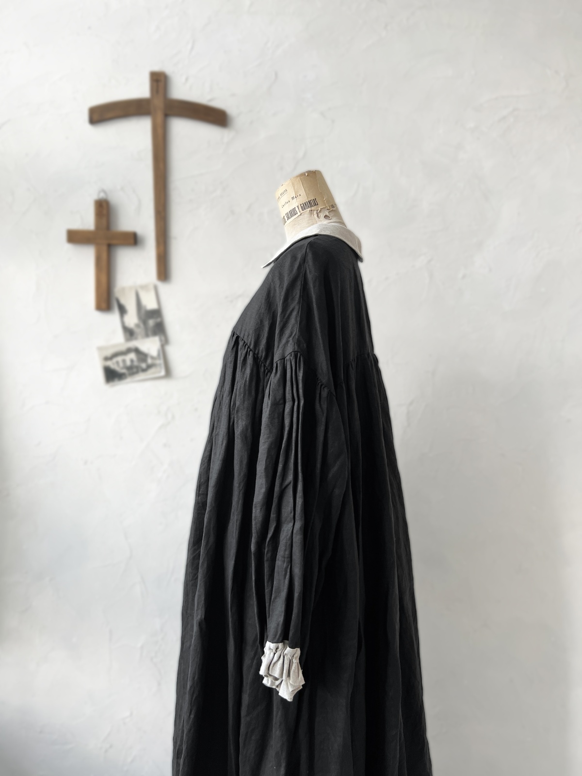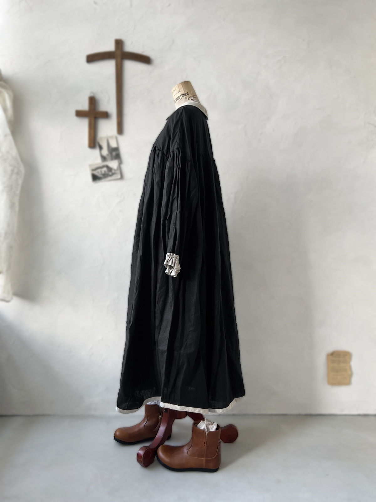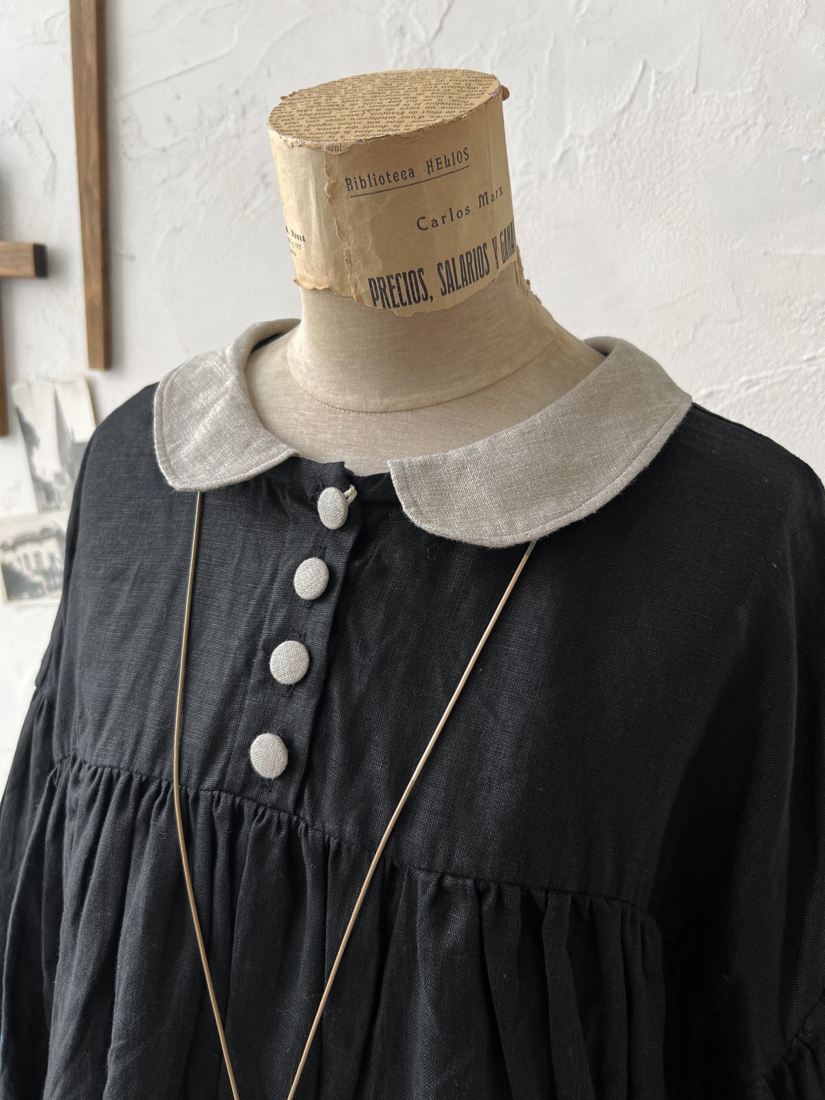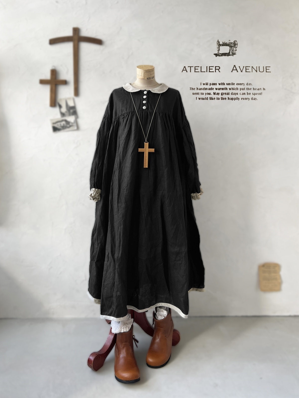 Avenue/丸襟ギャザーワンピース・黒 [AVE241201]