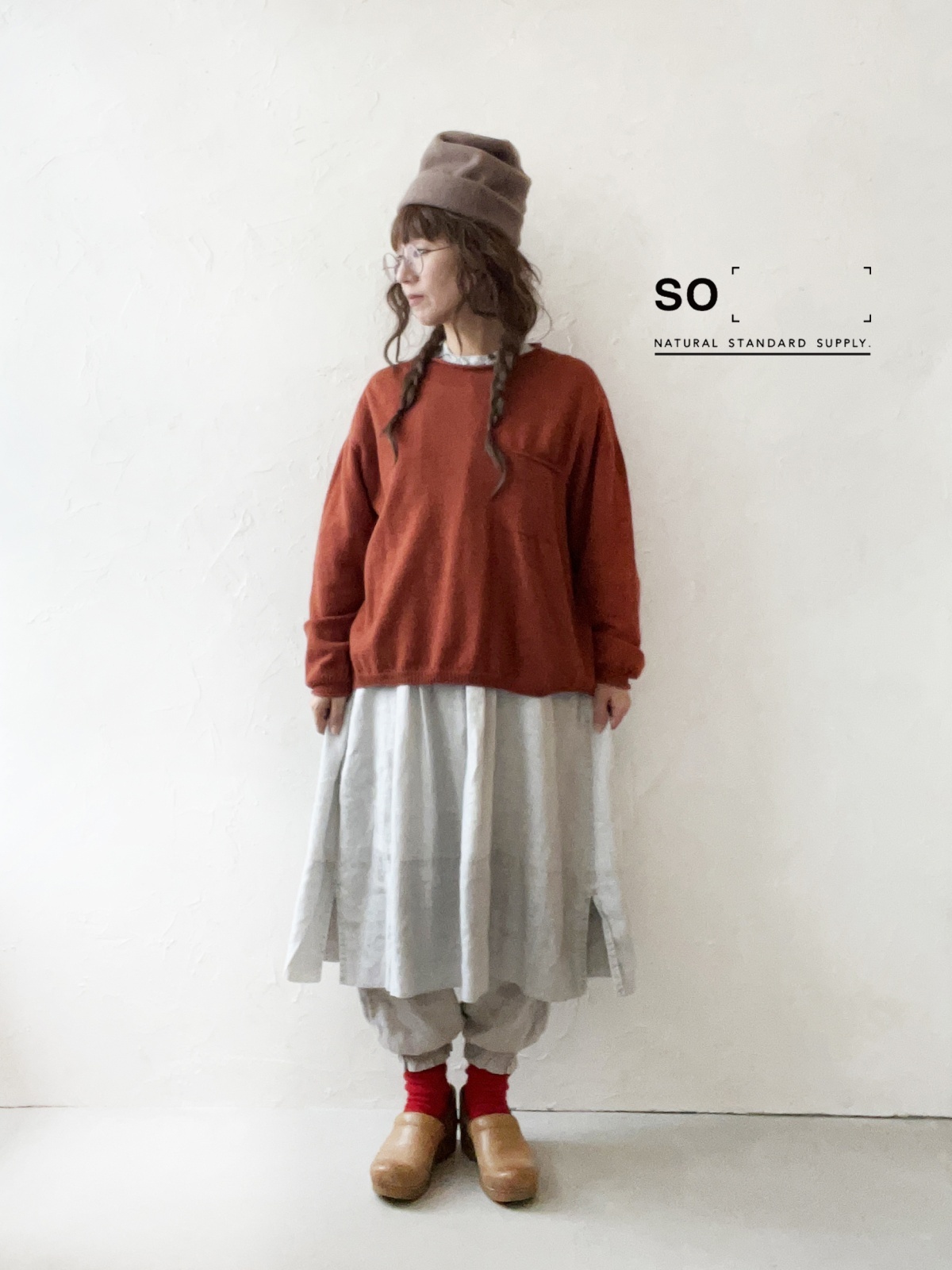SO/胸ポケットニットプルオーバー・ダークオレンジ [COF241227]