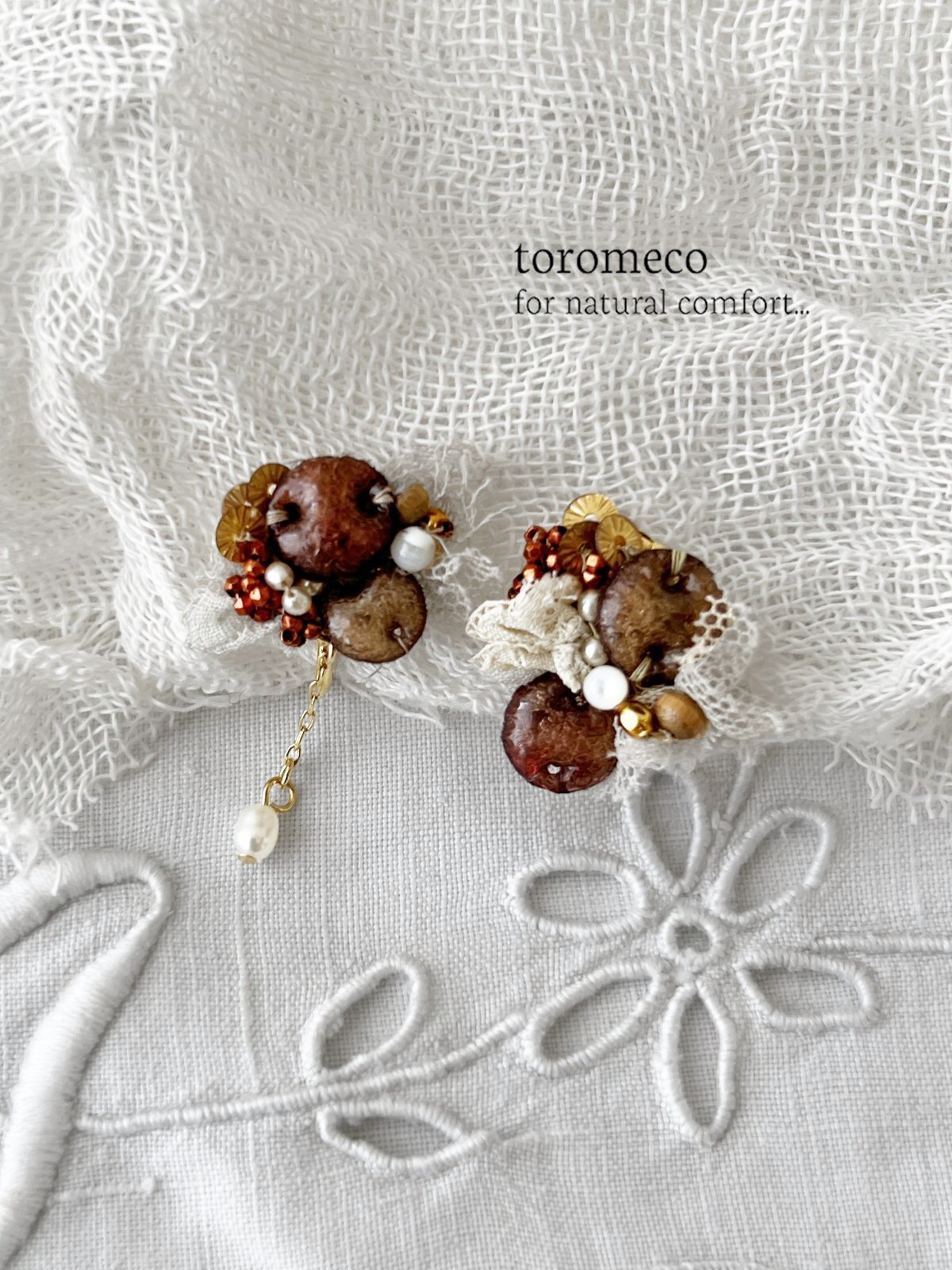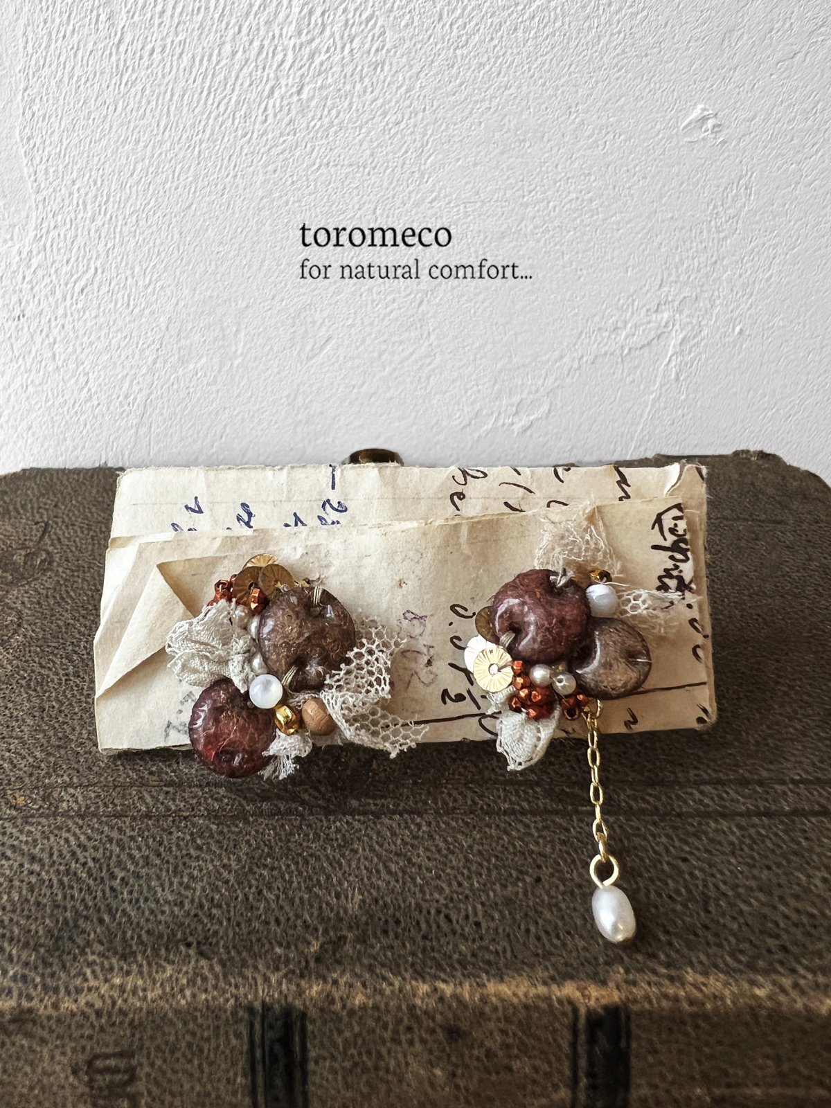 toromeco/”tsubuto” スフレスパンコールのイヤリング・ブラウンレッド [TOR241115]