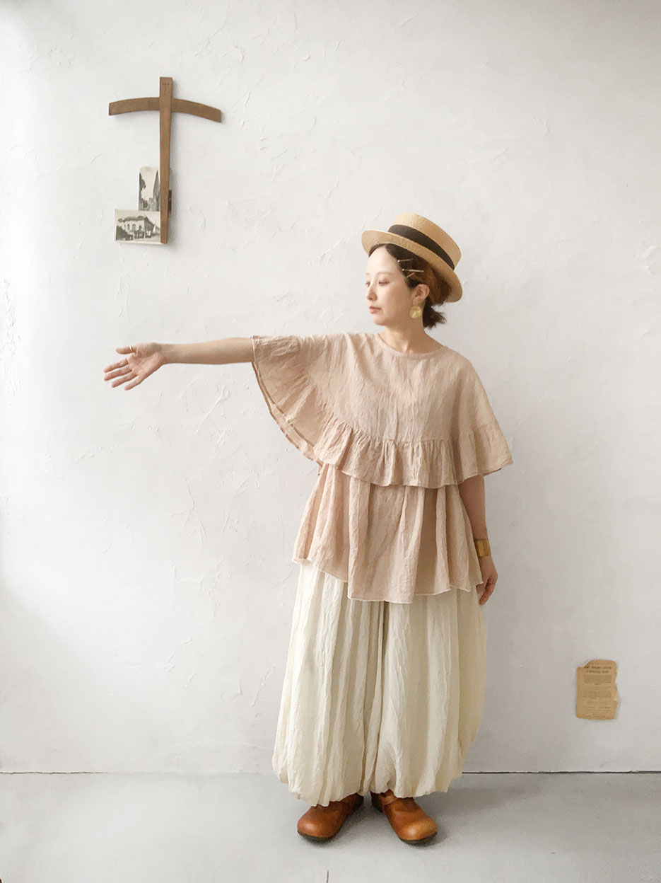 Avenue/フリルギャザーポンチョ・ベージュ [AVE241102]