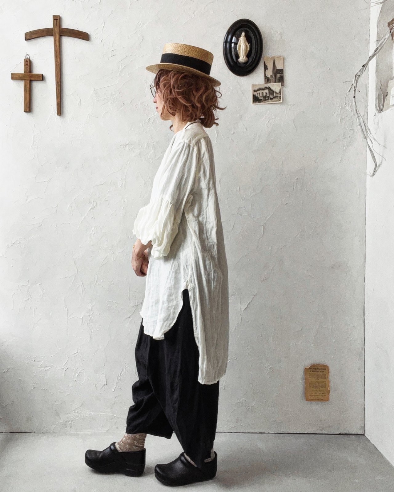 薄手のシャンブレーリネンで涼しく、軽く履いていただけます。