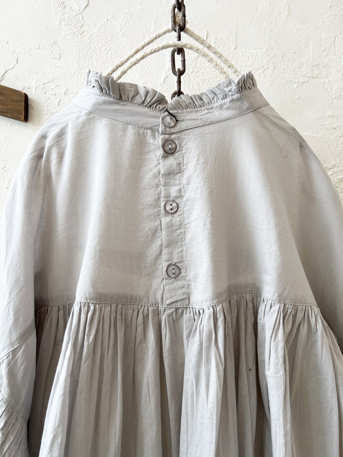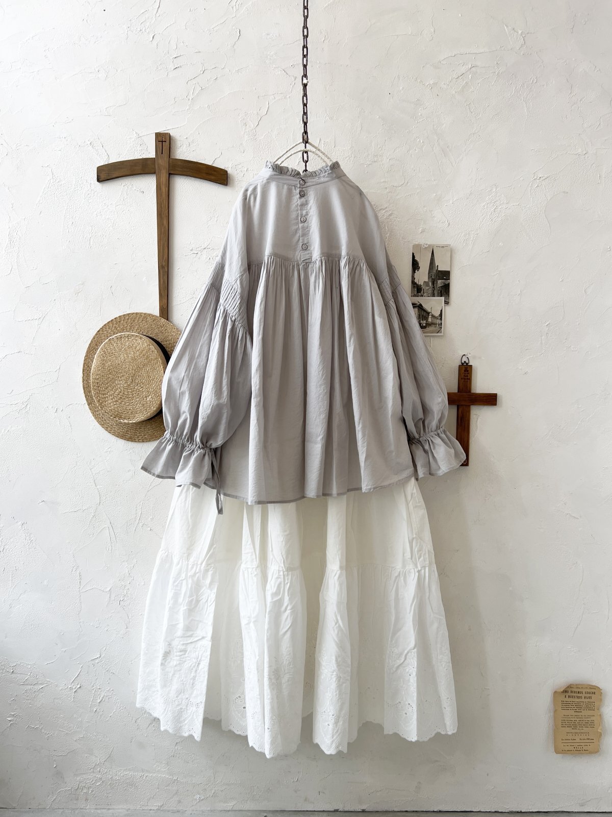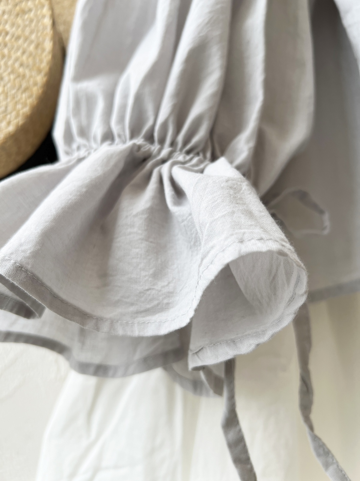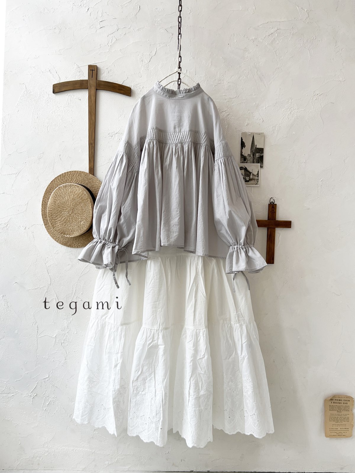 - > tegami/ピンタックリボンパフ袖のブラウス・ライトグレー