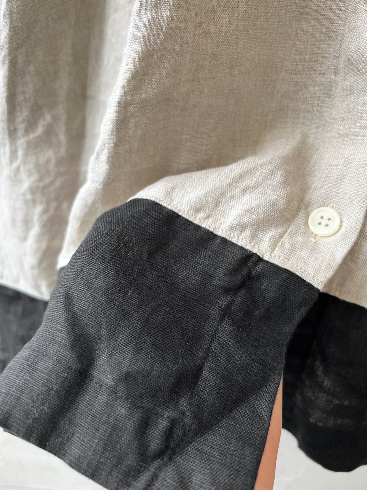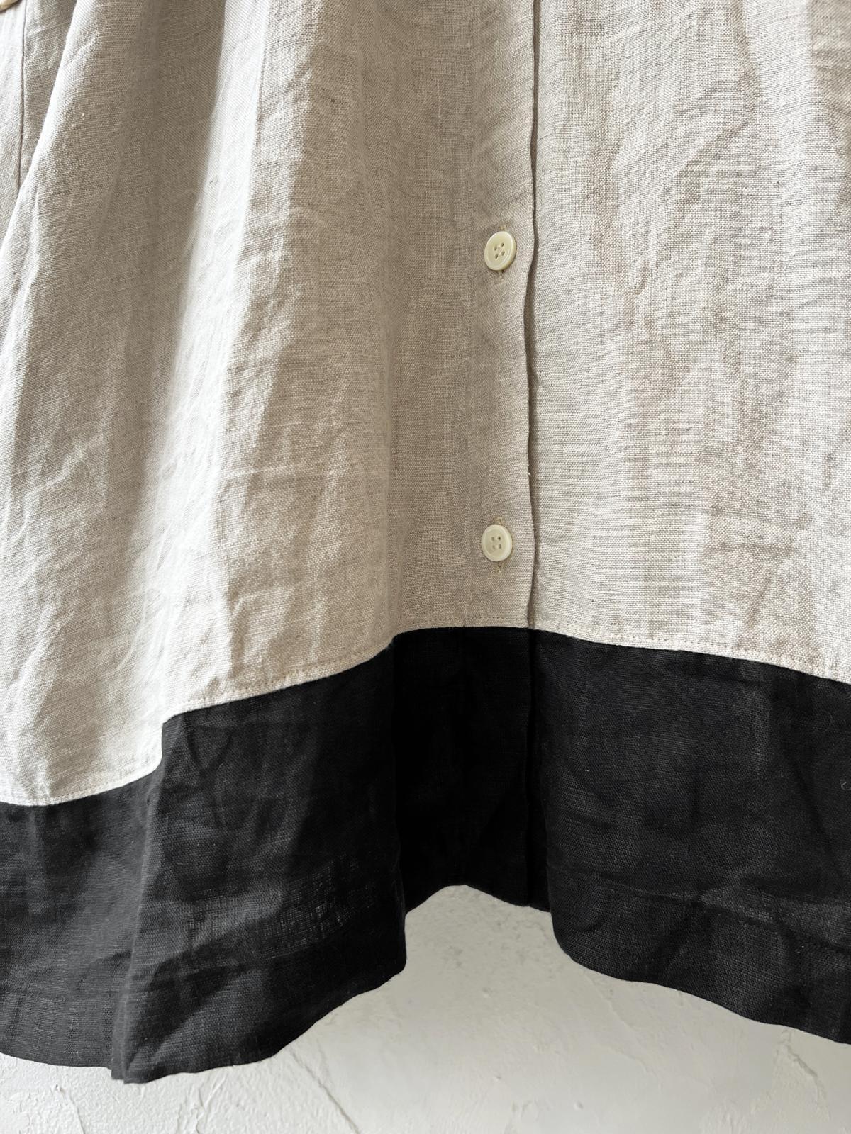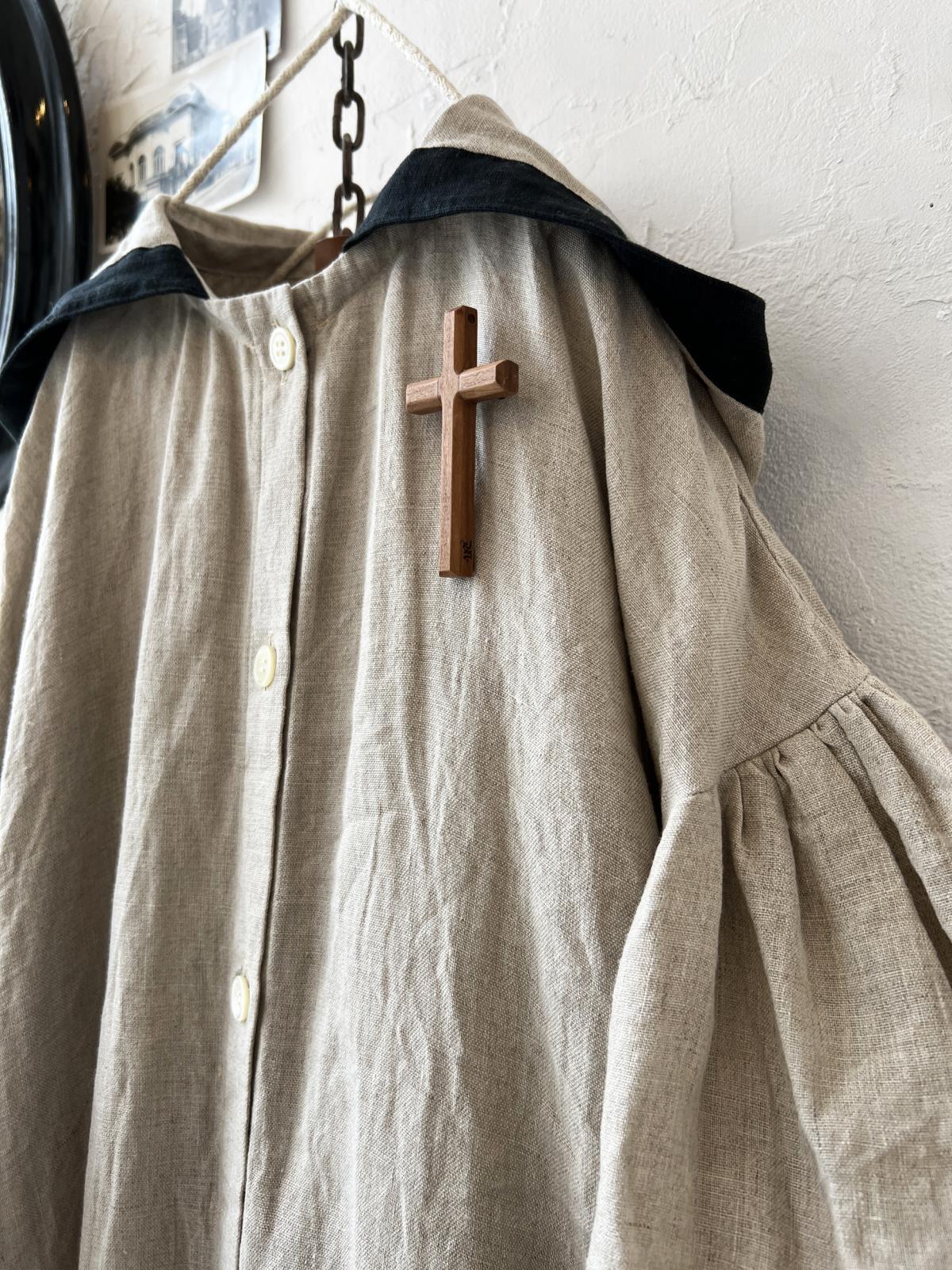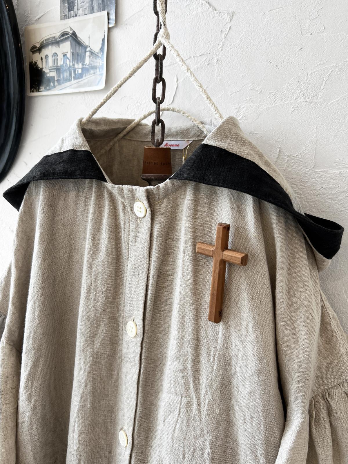 Avenue/フード付きリネンワンピース・生成りに黒ライン [AVE250601]