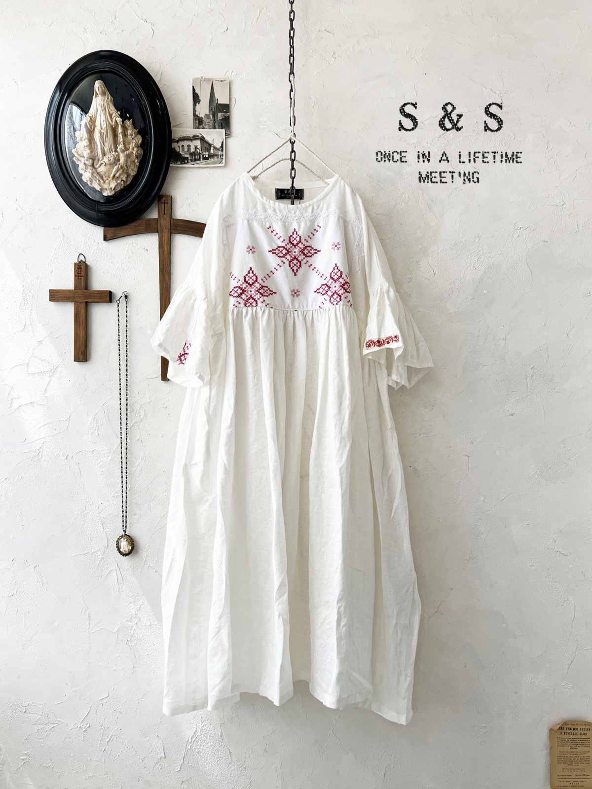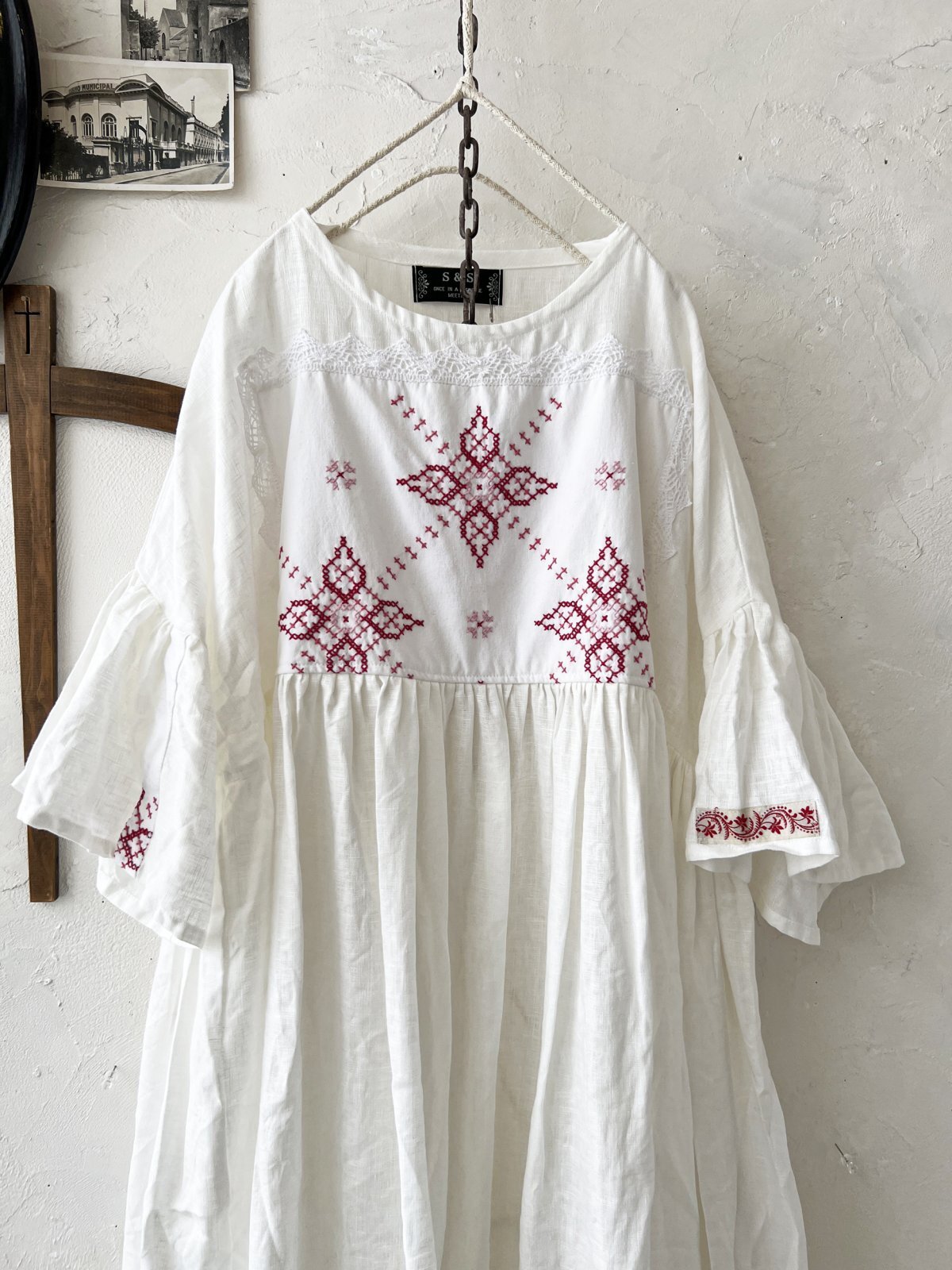 shizuka's【5】アンティークレースちょうちょ袖ワンピース・白C [SIZ250502]