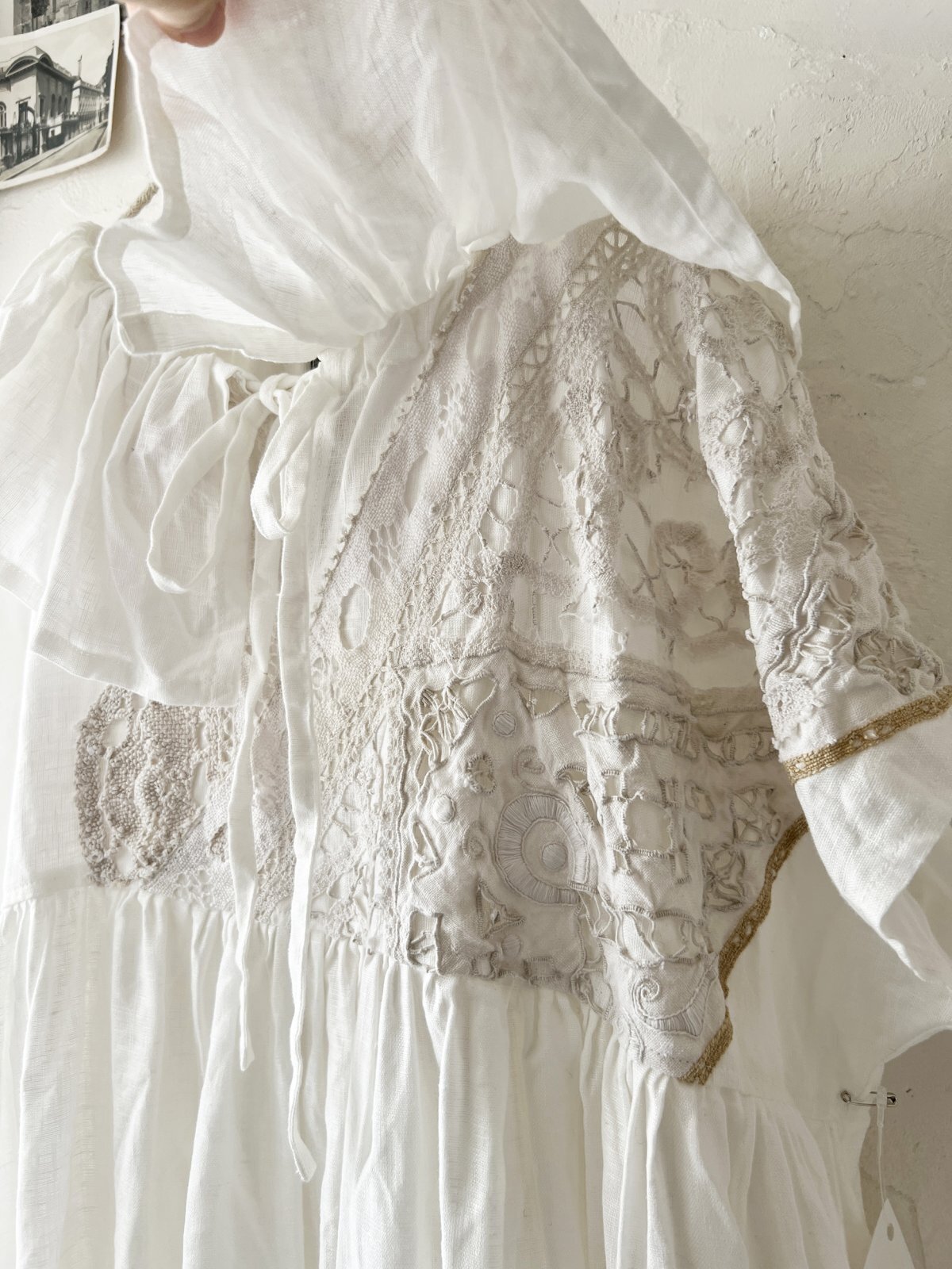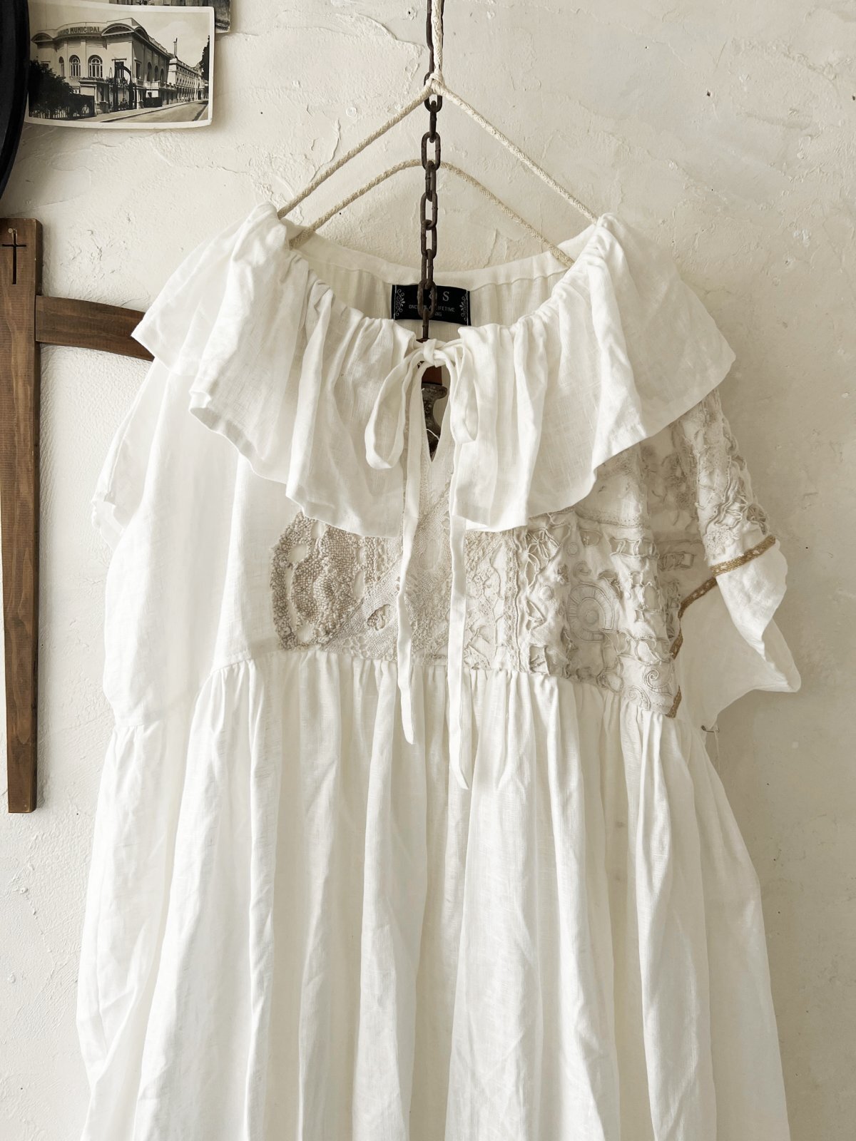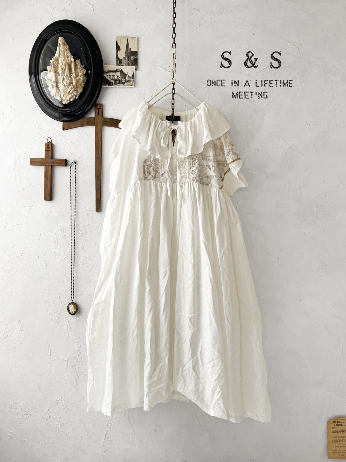 shizuka's【8】アンティークレースのフリル襟フレンチワンピース・白C [SIZ250501]