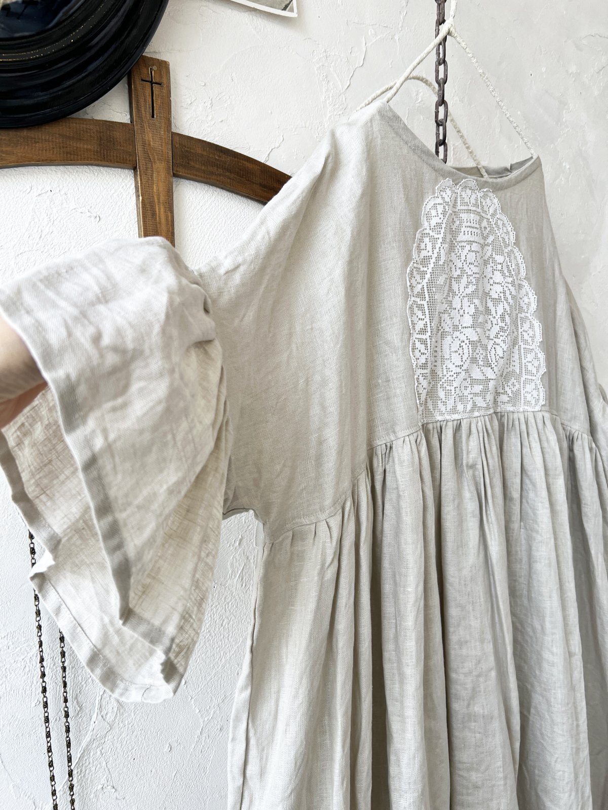 shizuka's【13】アンティークレースちょうちょ袖ワンピース・生成りA [SIZ250602]