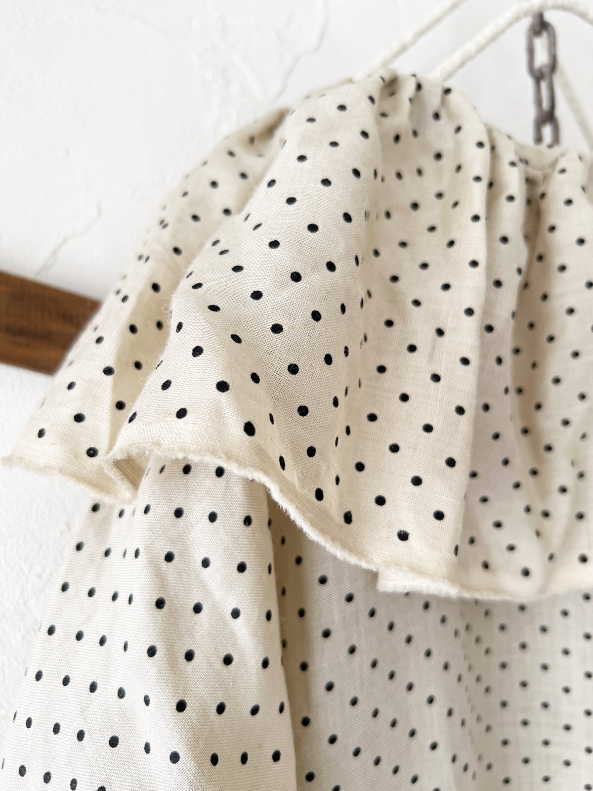 ドット柄リネンのワンピース。
