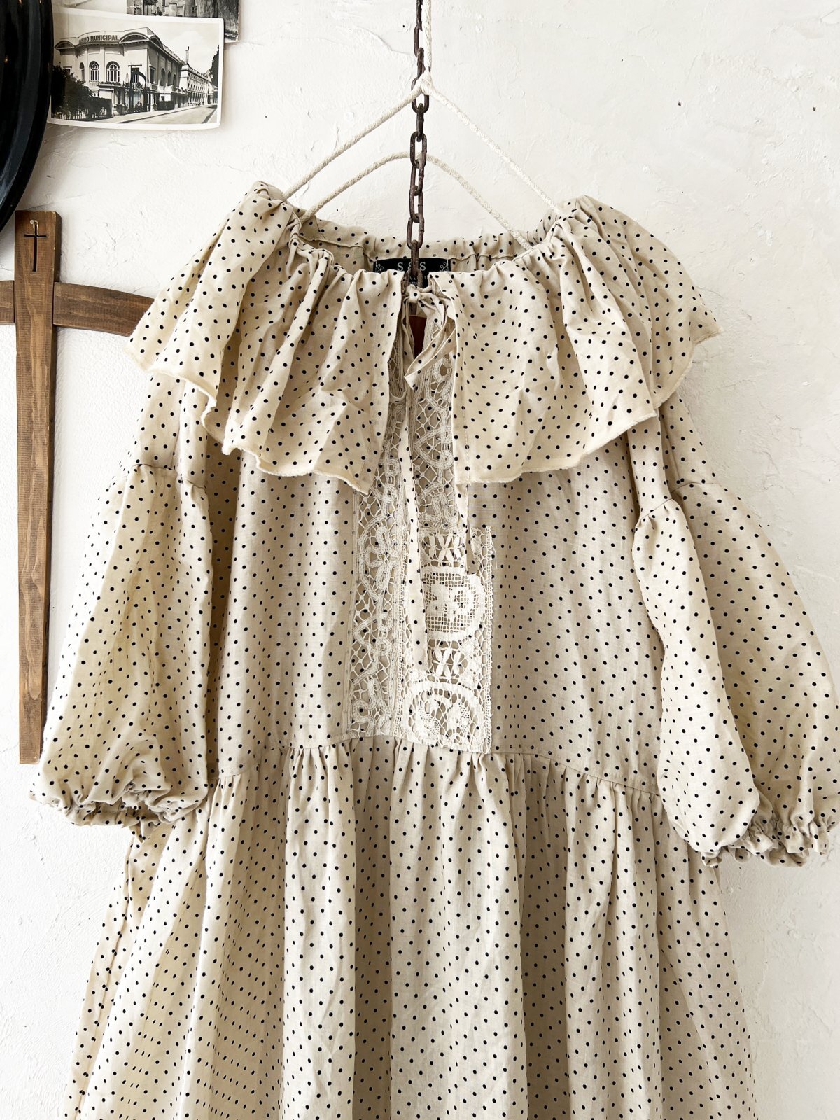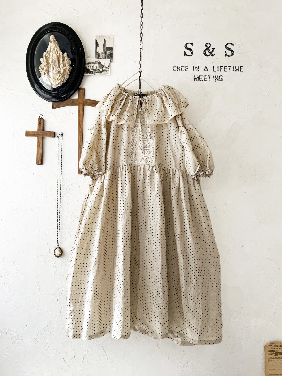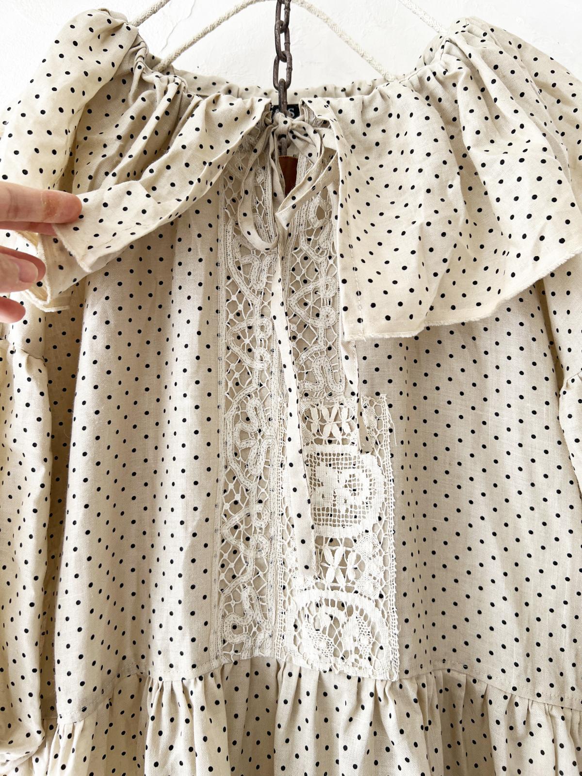shizuka's【18】アンティークレースの ドットフリルワンピース・ベージュA [SIZ250609]
