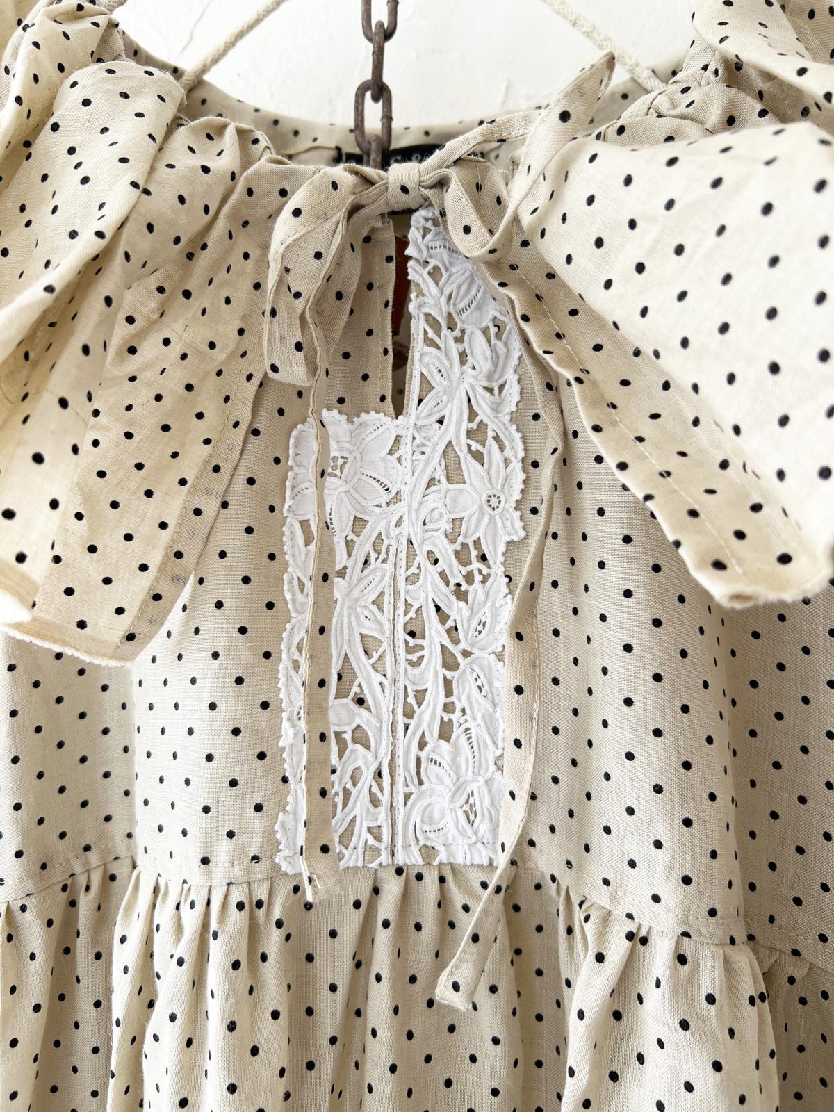 ドット柄リネンのワンピース。