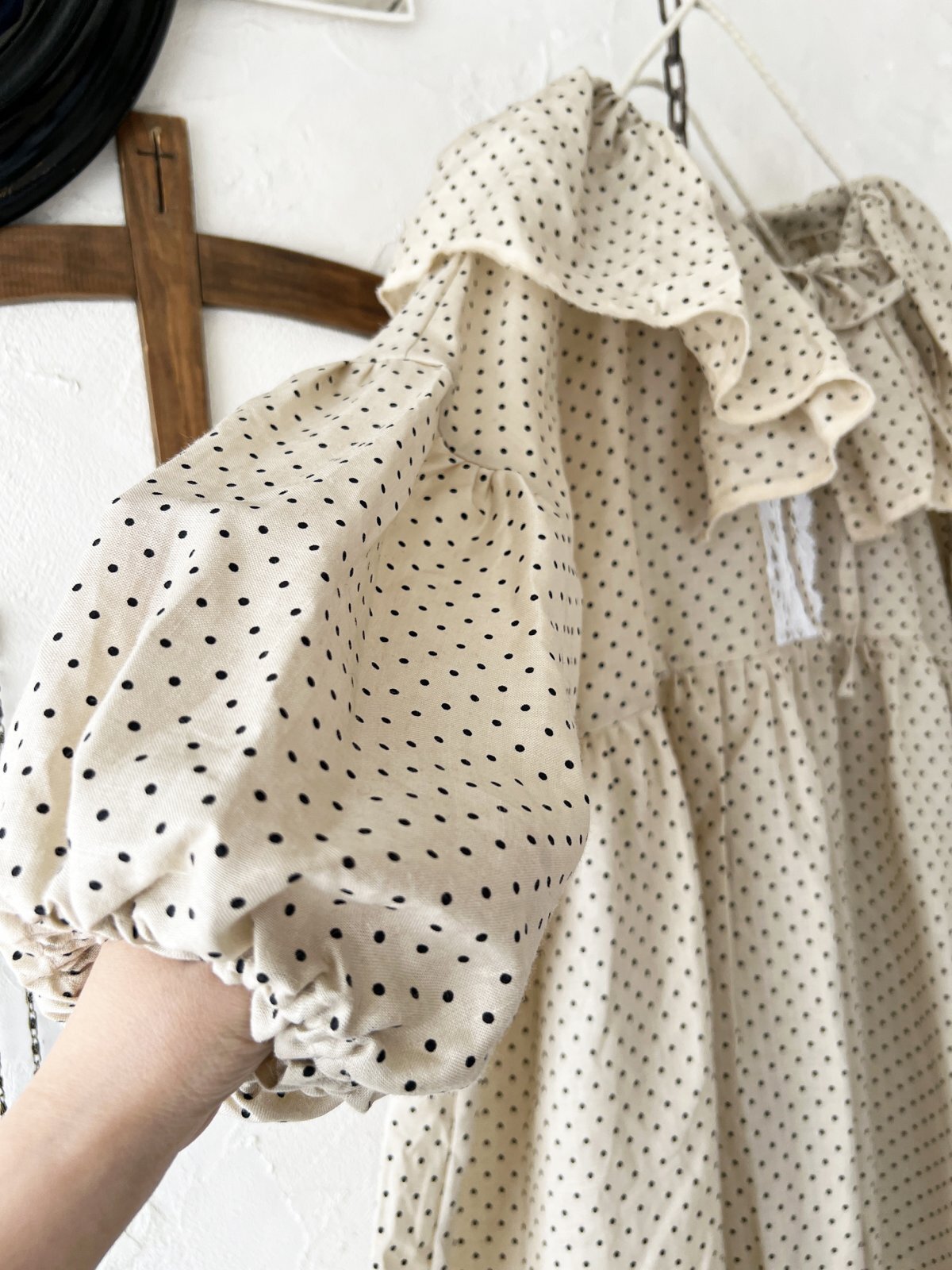 shizuka's【19】アンティークレースの ドットフリルワンピース・ベージュB [SIZ250609]