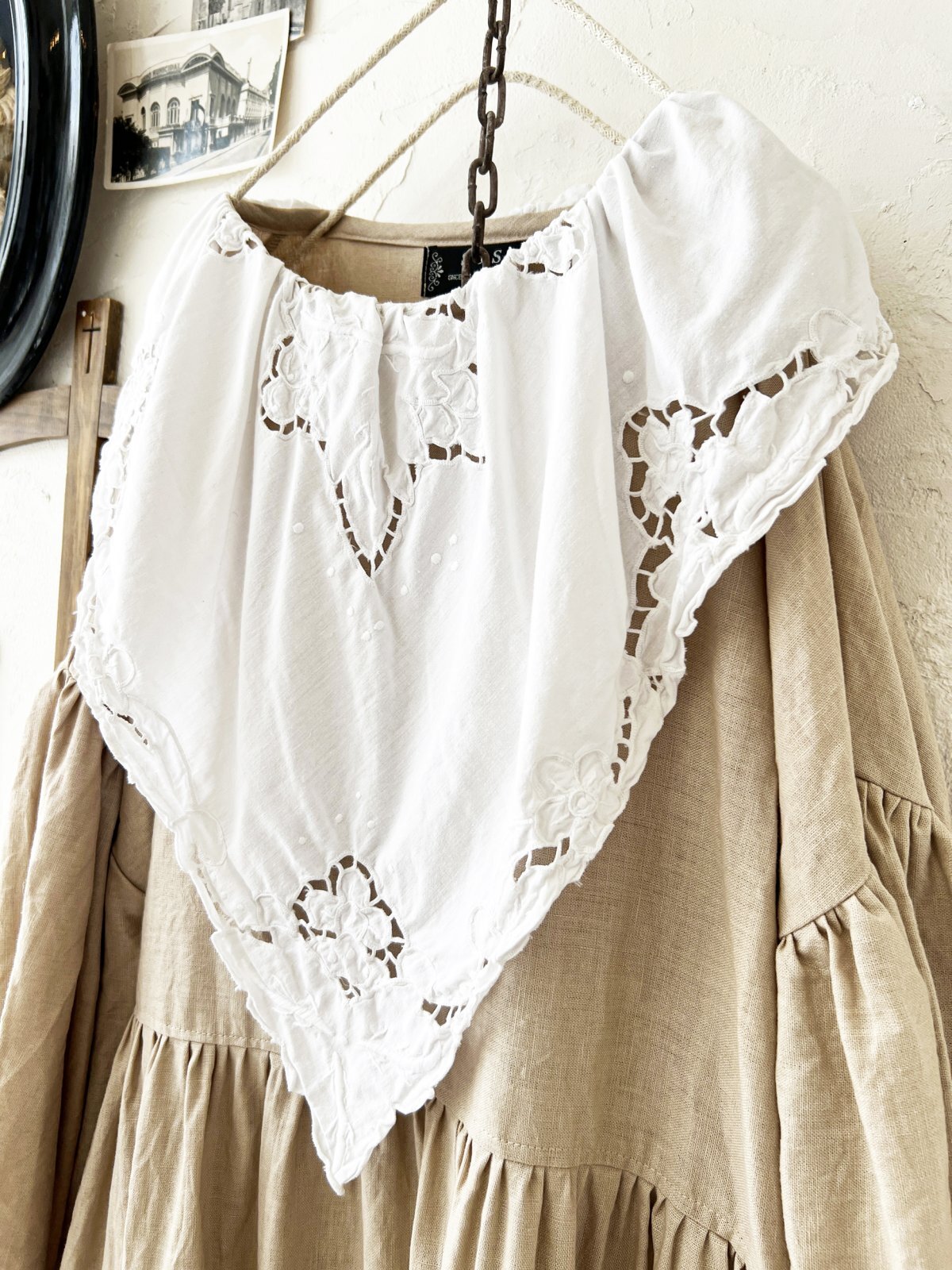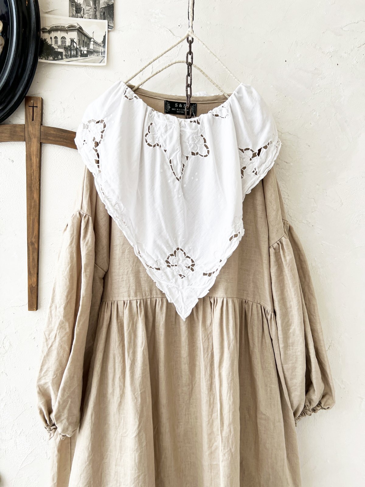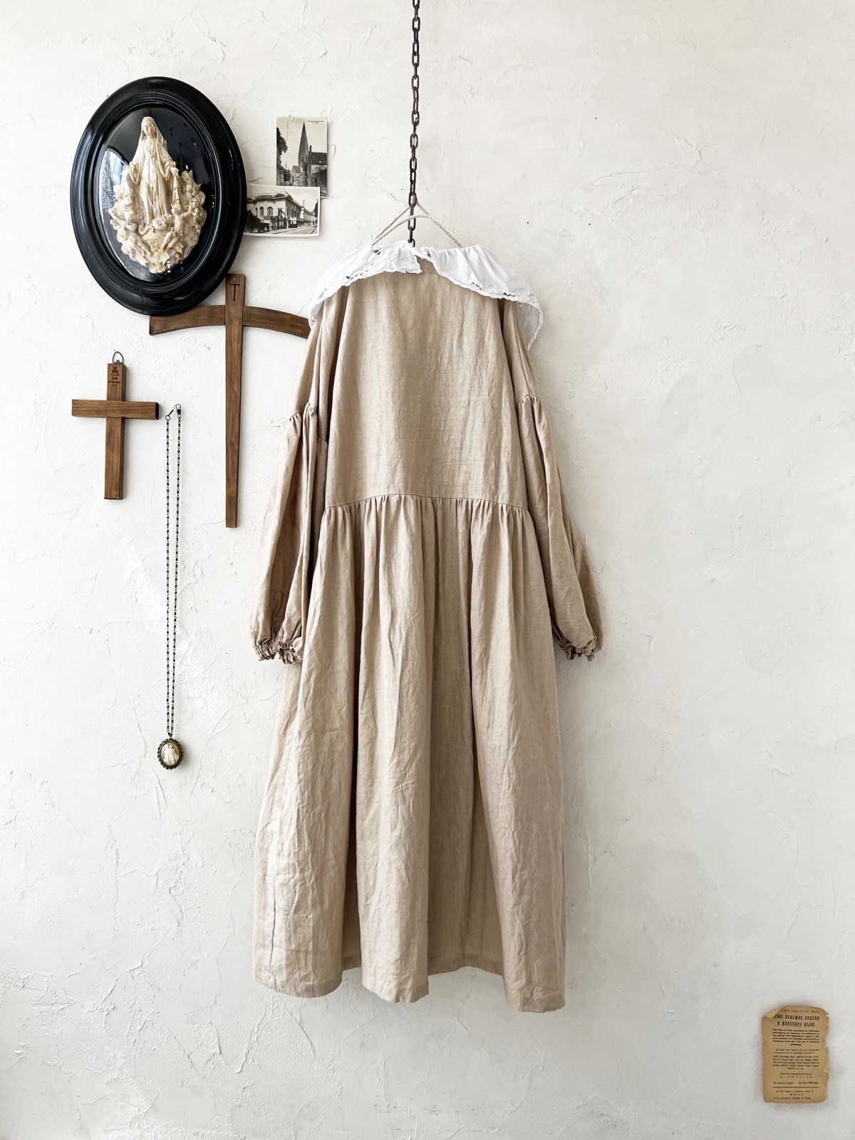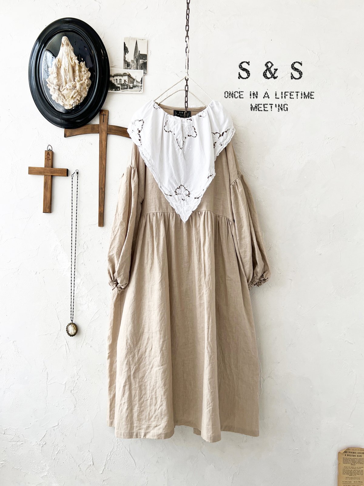 shizuka's【21】アンティークレースのボリューム袖ワンピース・濃ベージュ [SIZ250505]