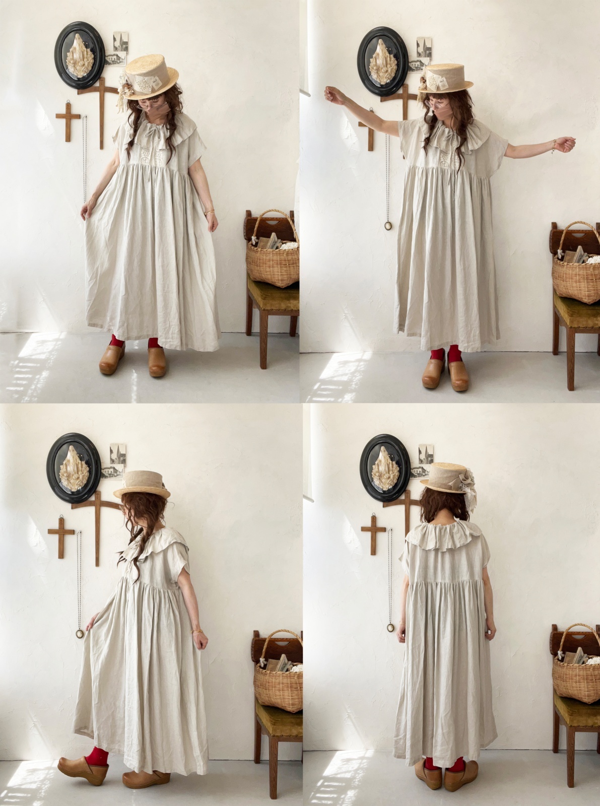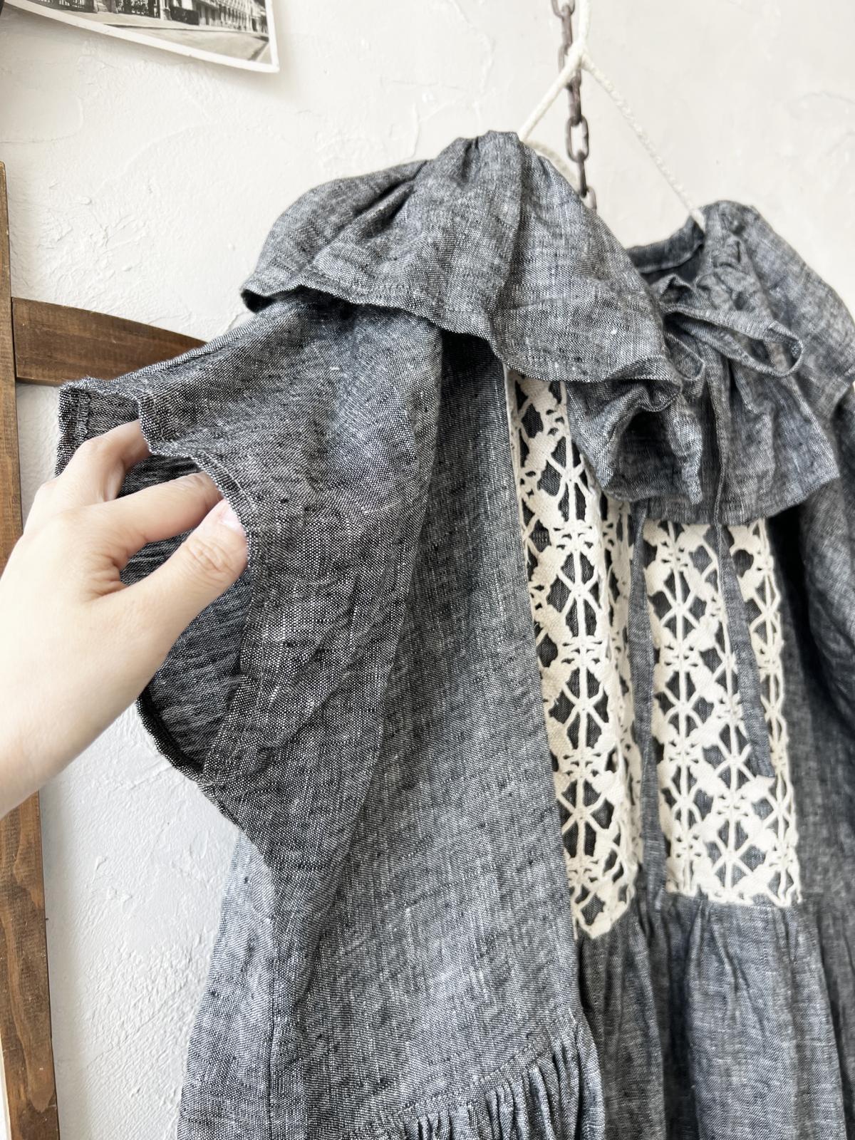 shizuka's【25】アンティークレースのフリル襟フレンチワンピース・黒シャンブレーB [SIZ250501]