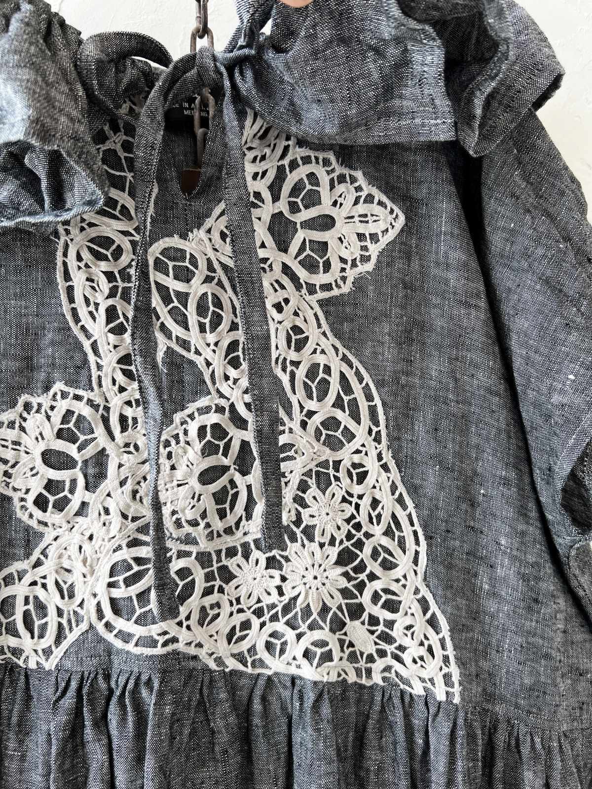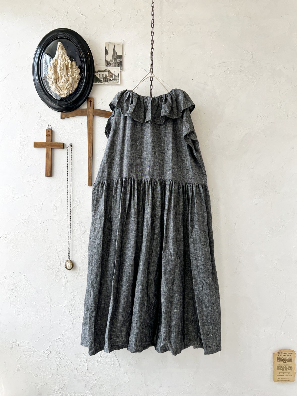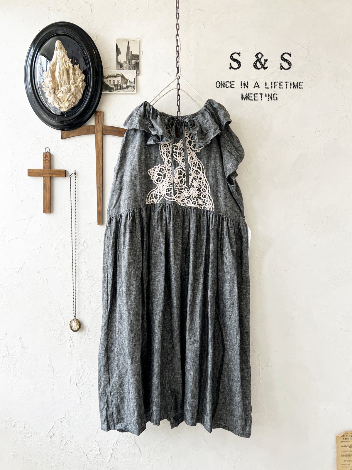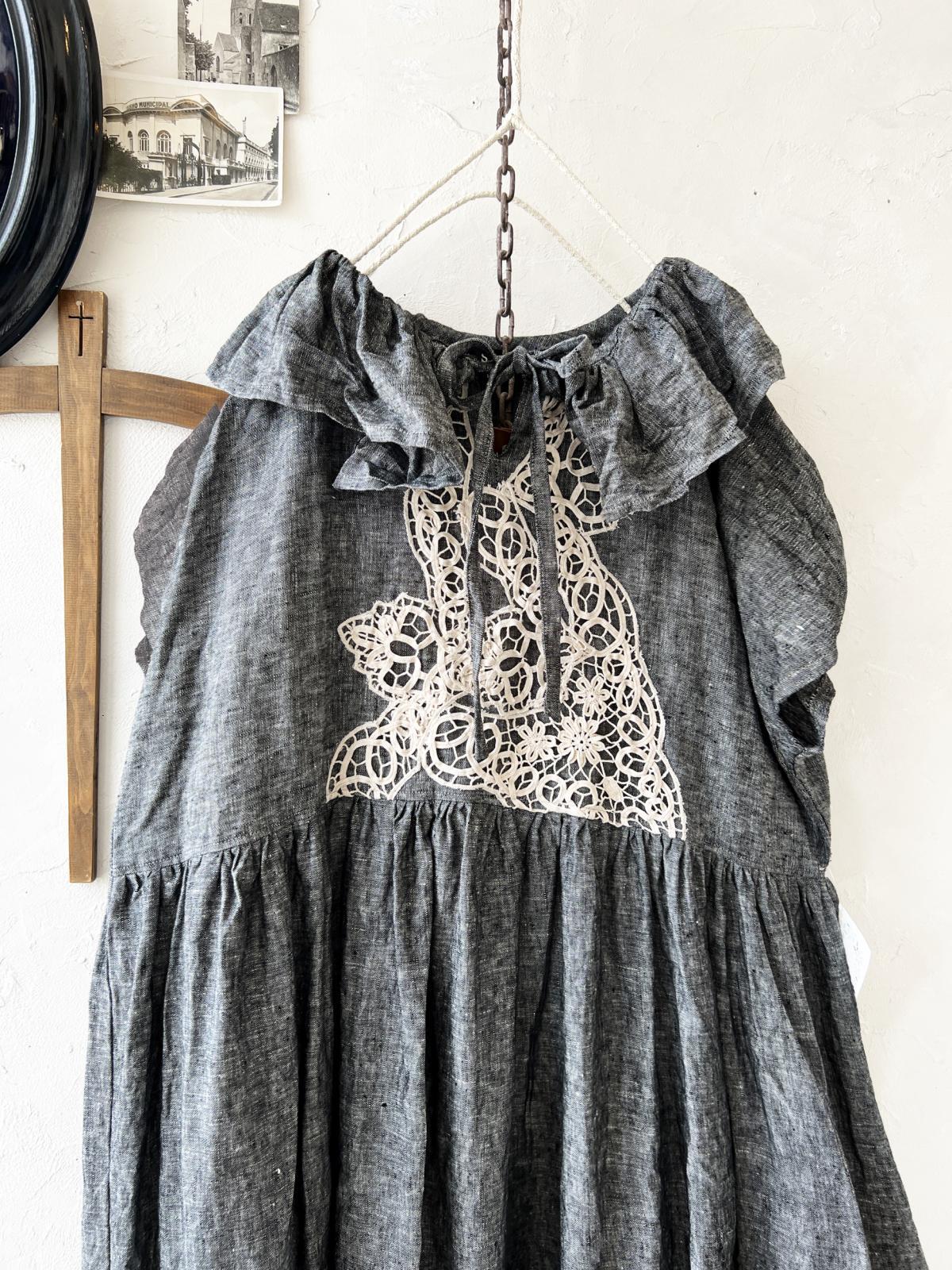 shizuka's【26】アンティークレースのフリル襟フレンチワンピース・黒シャンブレーC [SIZ250501]