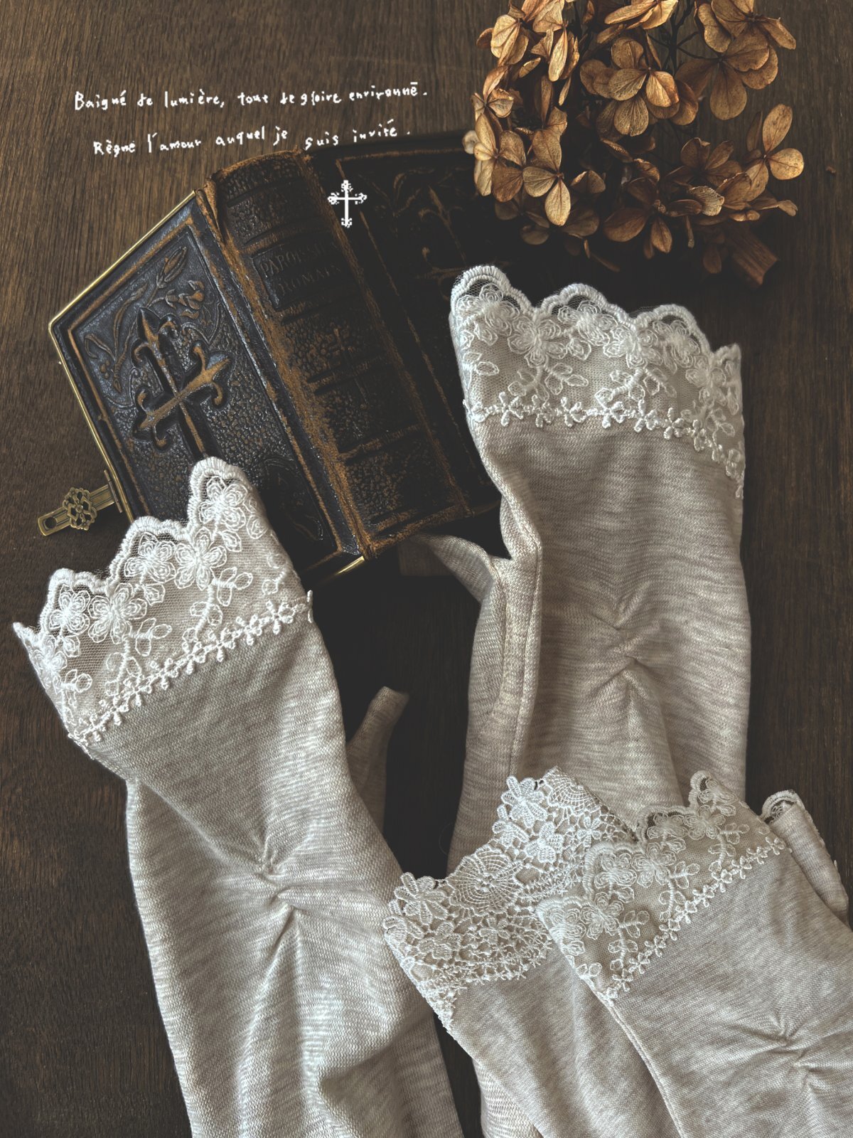 monami/コットンUVセミロングアームカバー・ダブルレース [OTH250511]