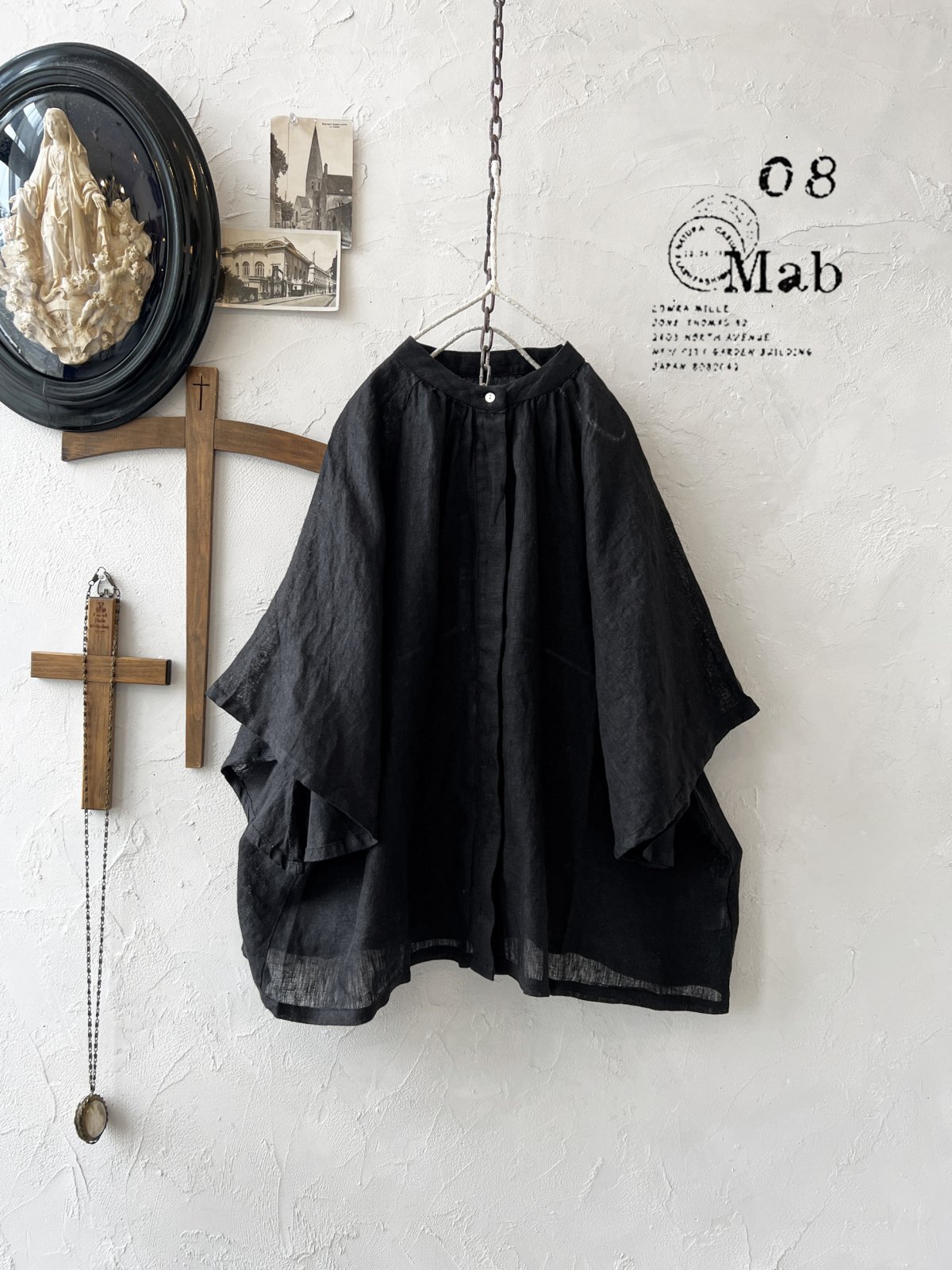 08mab/リネンシャンブレーラグランブラウス・黒 [8MA250614]