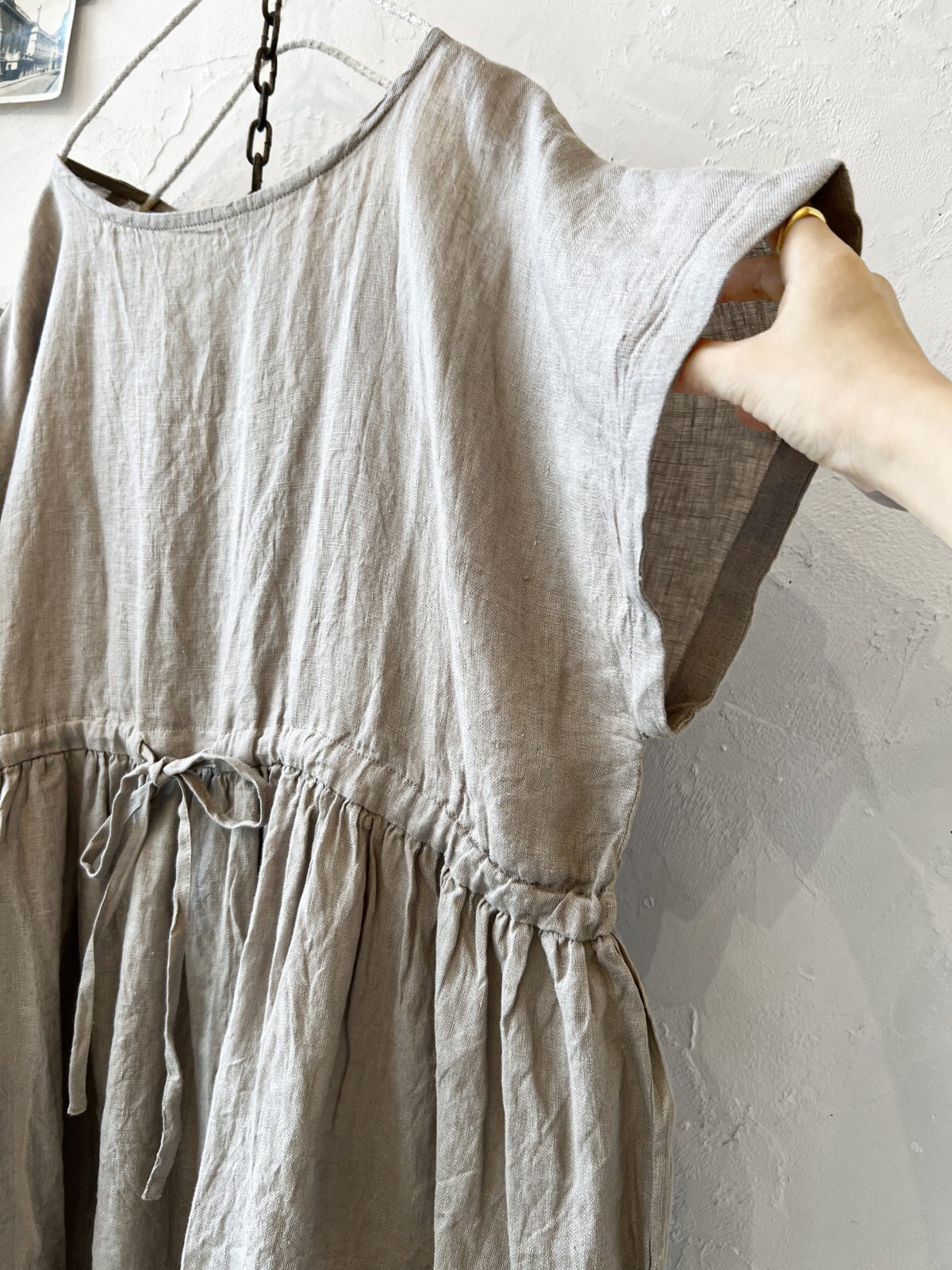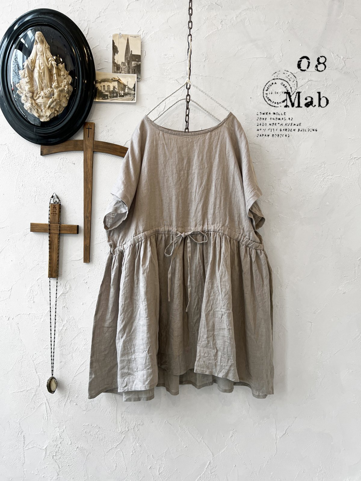08mab/リネンシャンブレーウエストリボンチュニック・ベージュ [8MA250610]