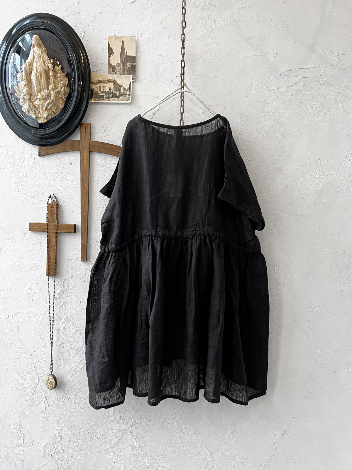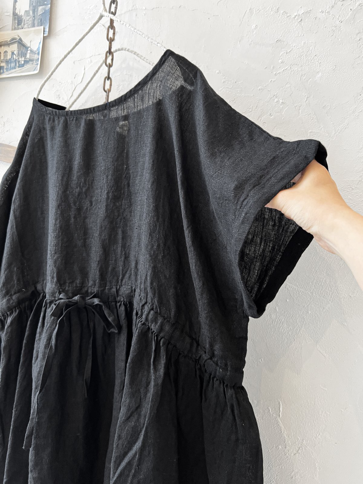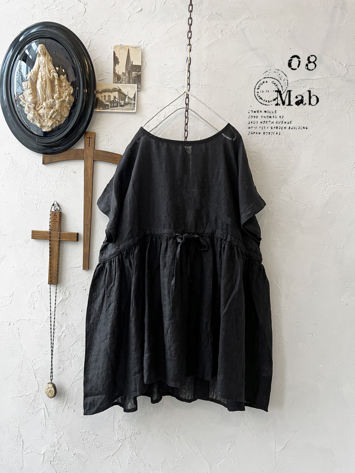 08mab/リネンシャンブレーウエストリボンチュニック・黒 [8MA250611]