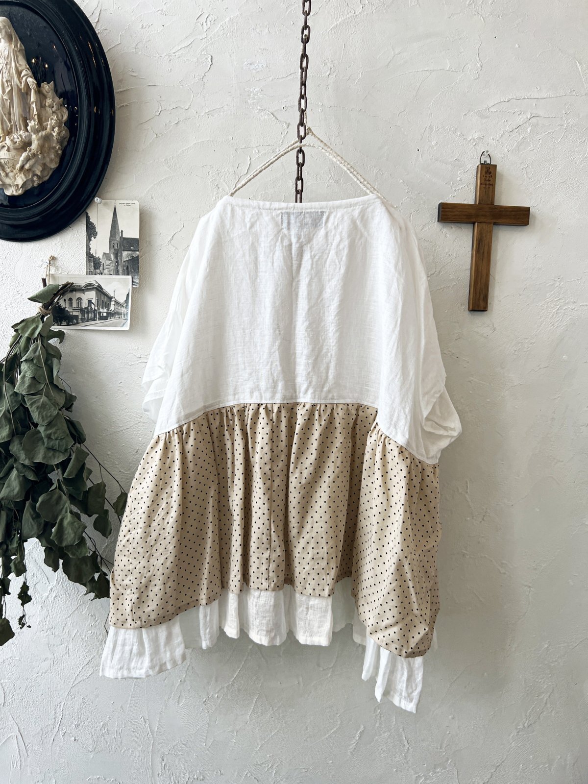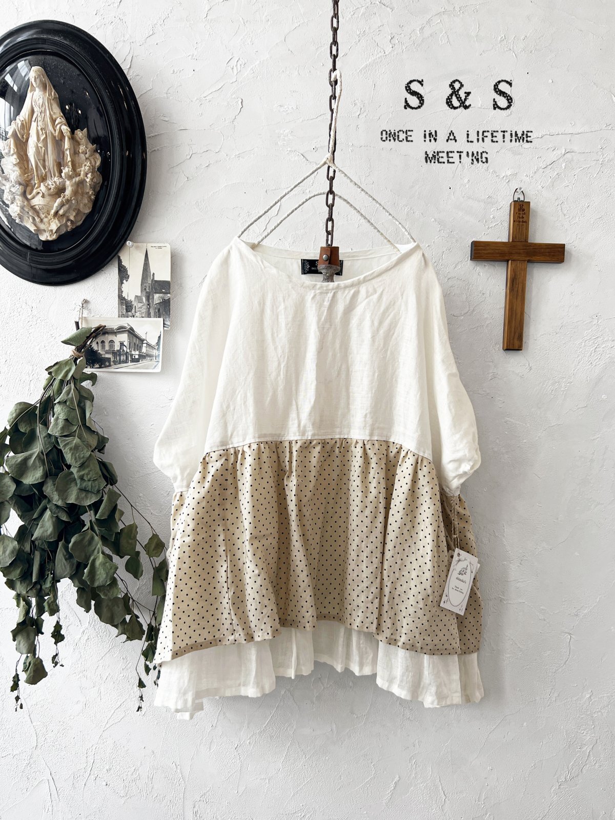 shizuka's/フレンチ袖レイヤードブラウス・ベージュドット [SIZ250702]