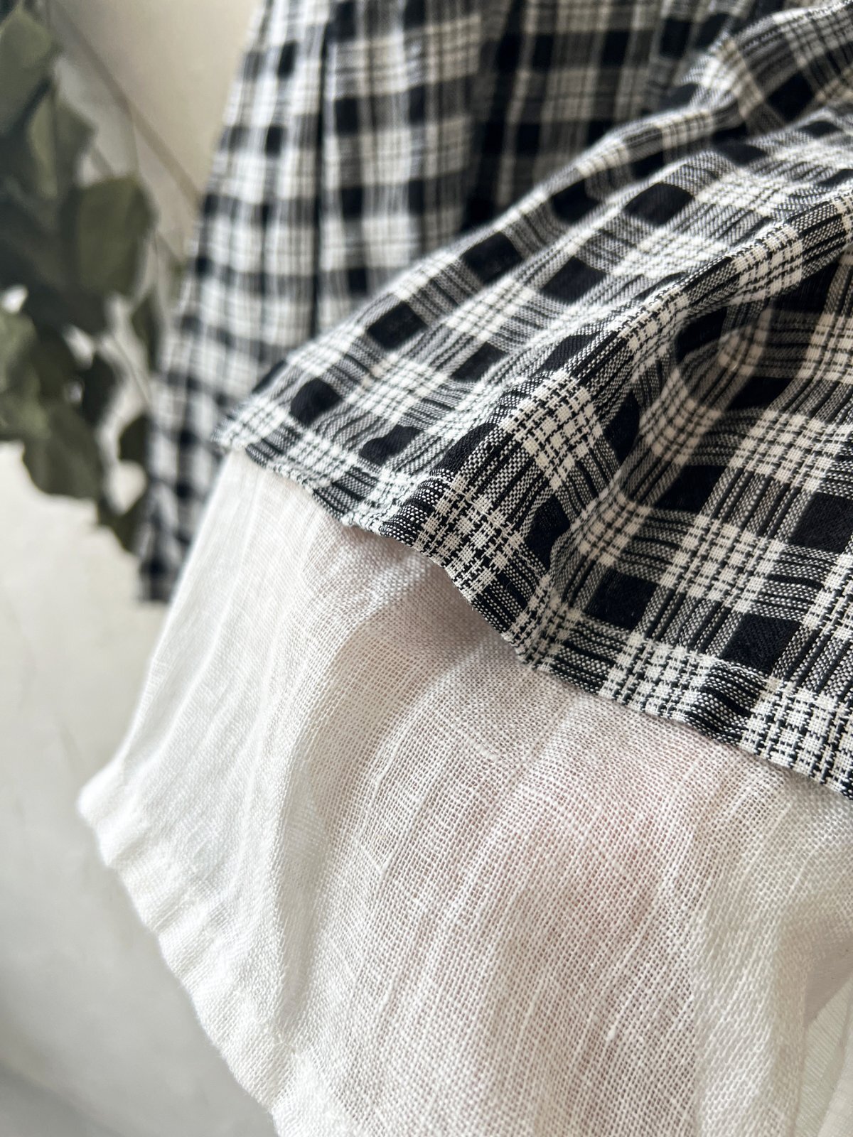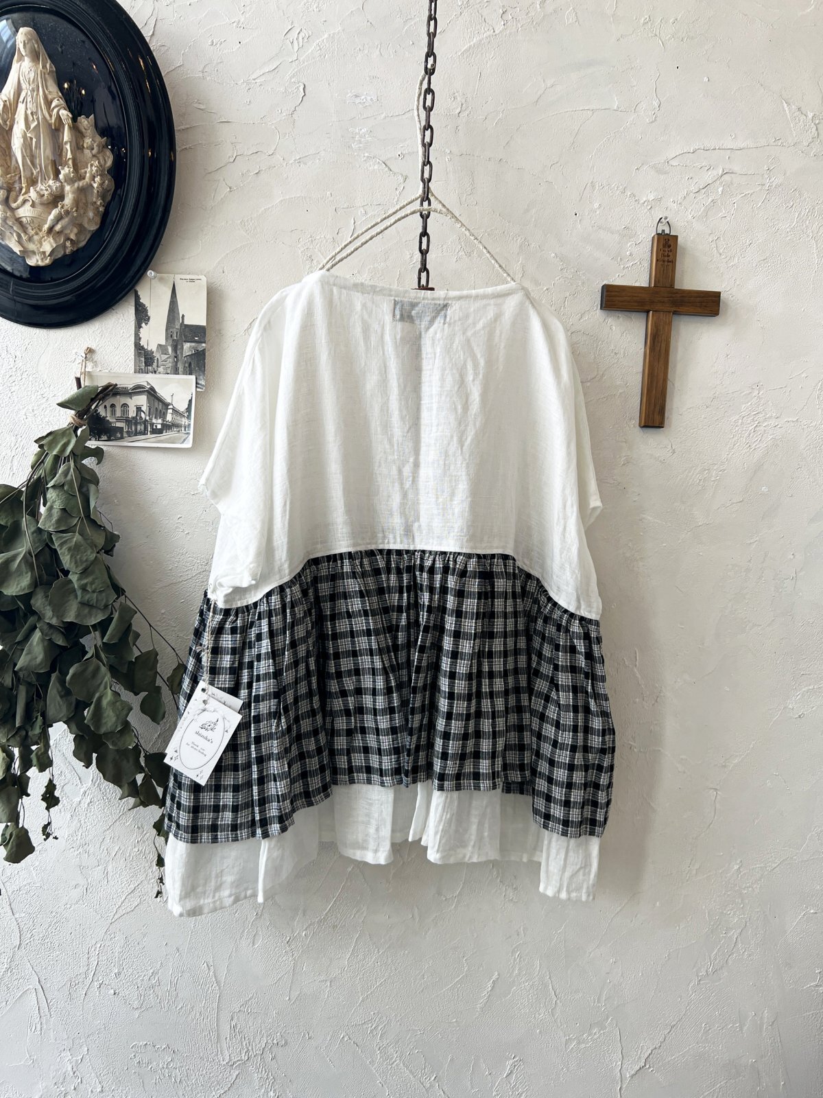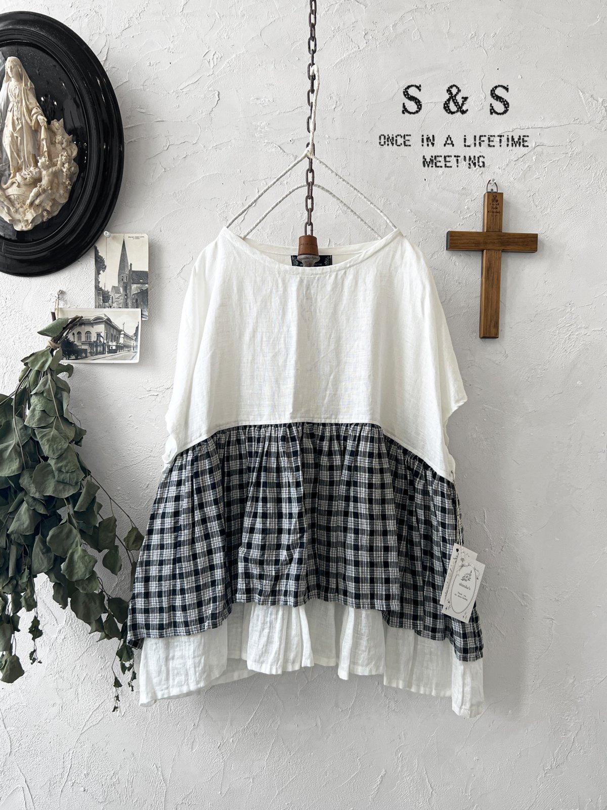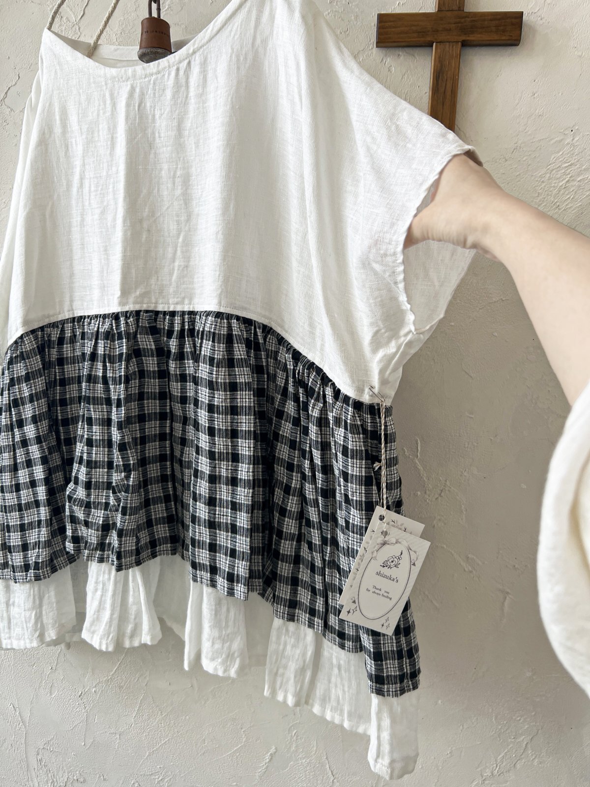 shizuka's/フレンチ袖レイヤードブラウス・黒チェック [SIZ250702]