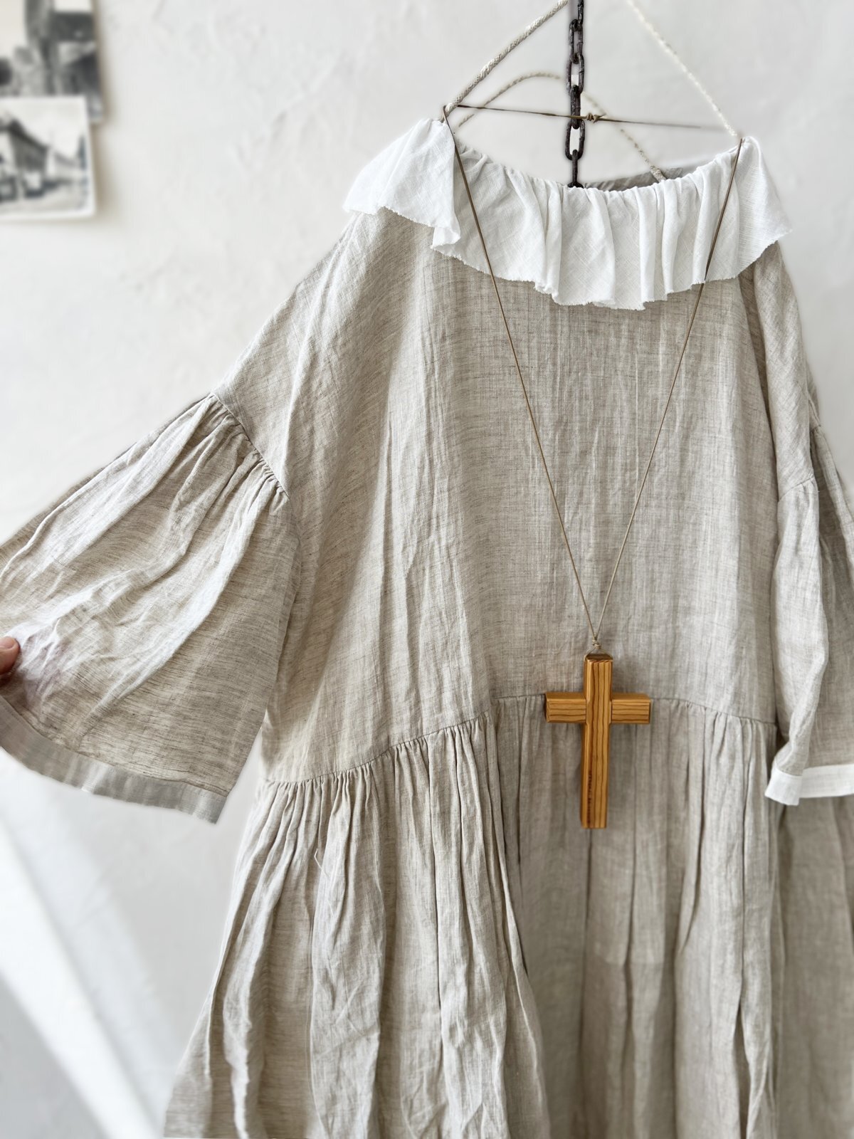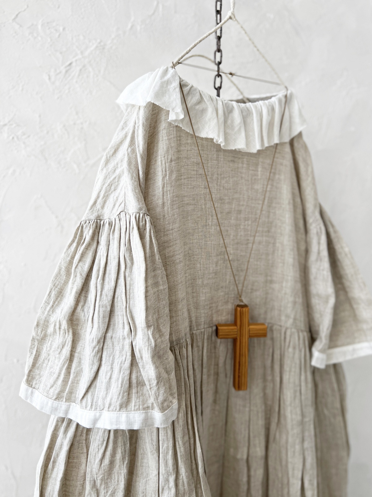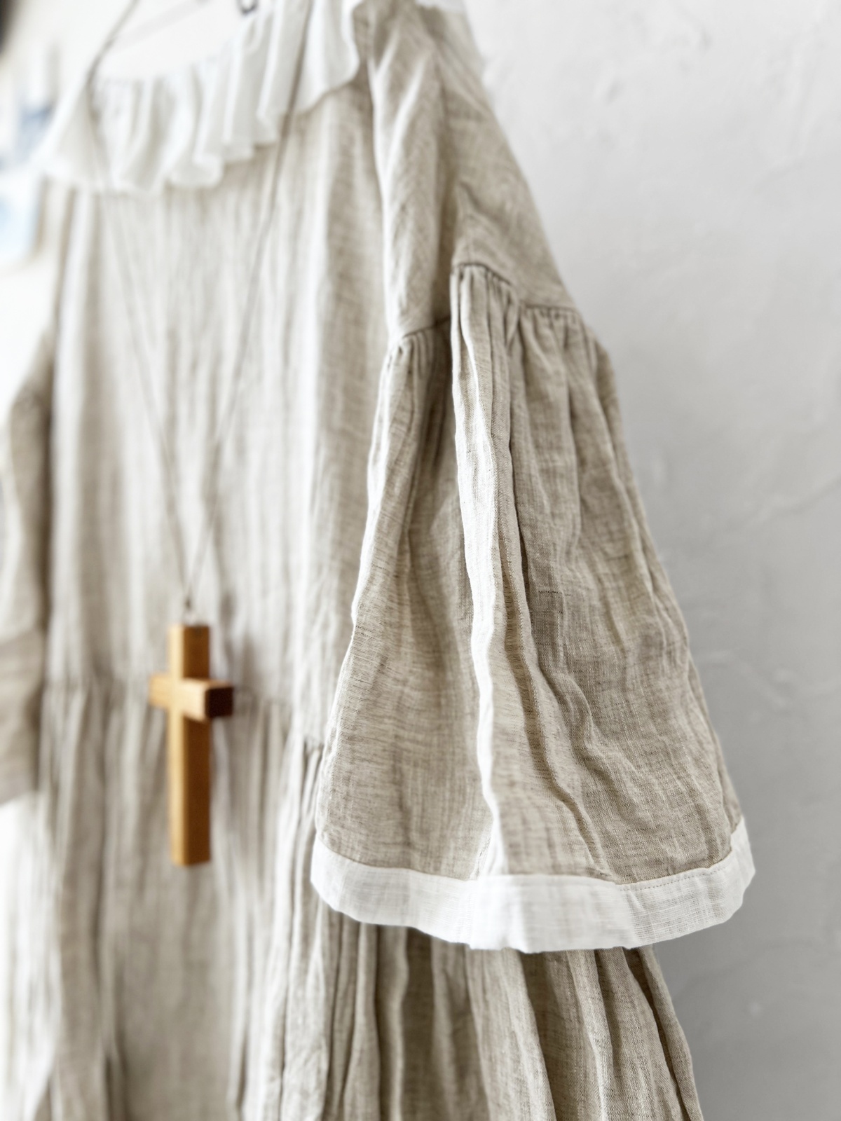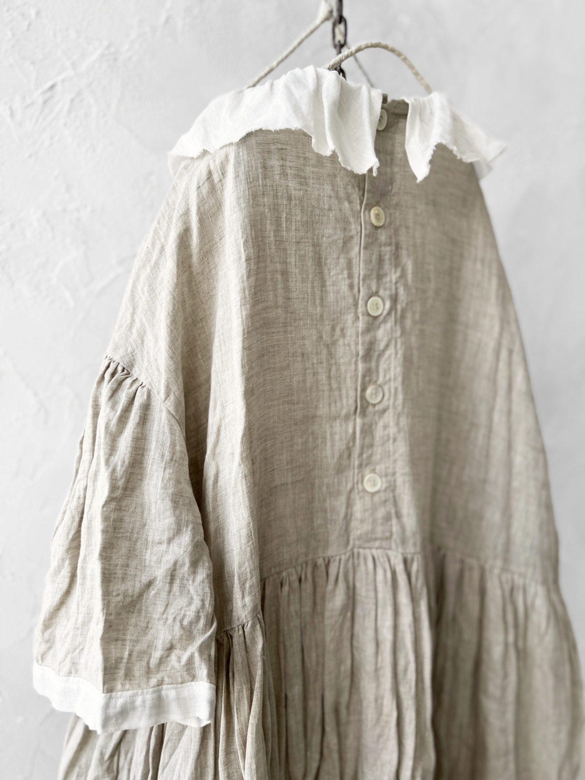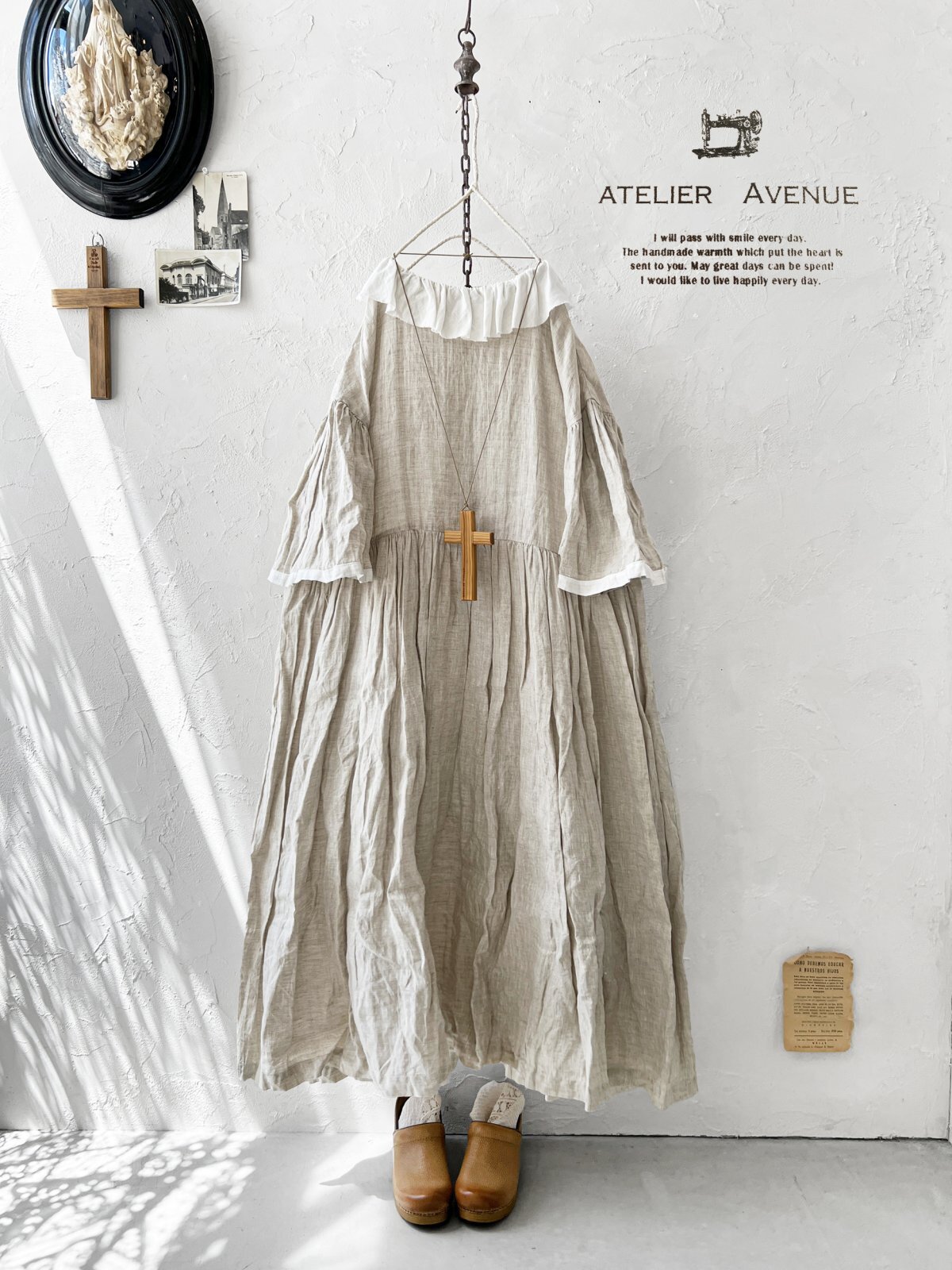 Avenue/フリル襟リネンワンピース・生成りに白襟 [AVE250704]