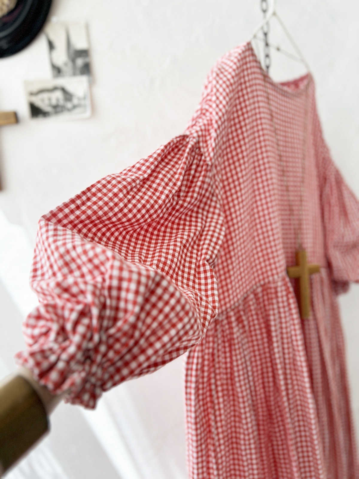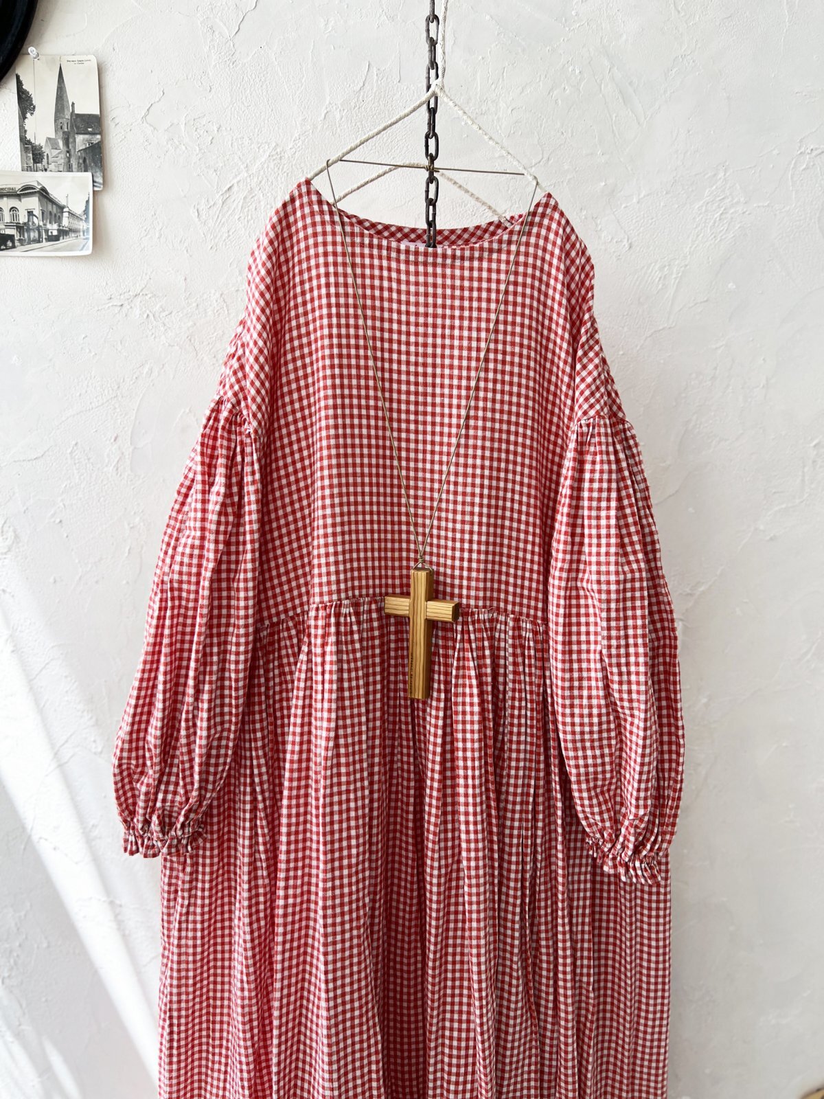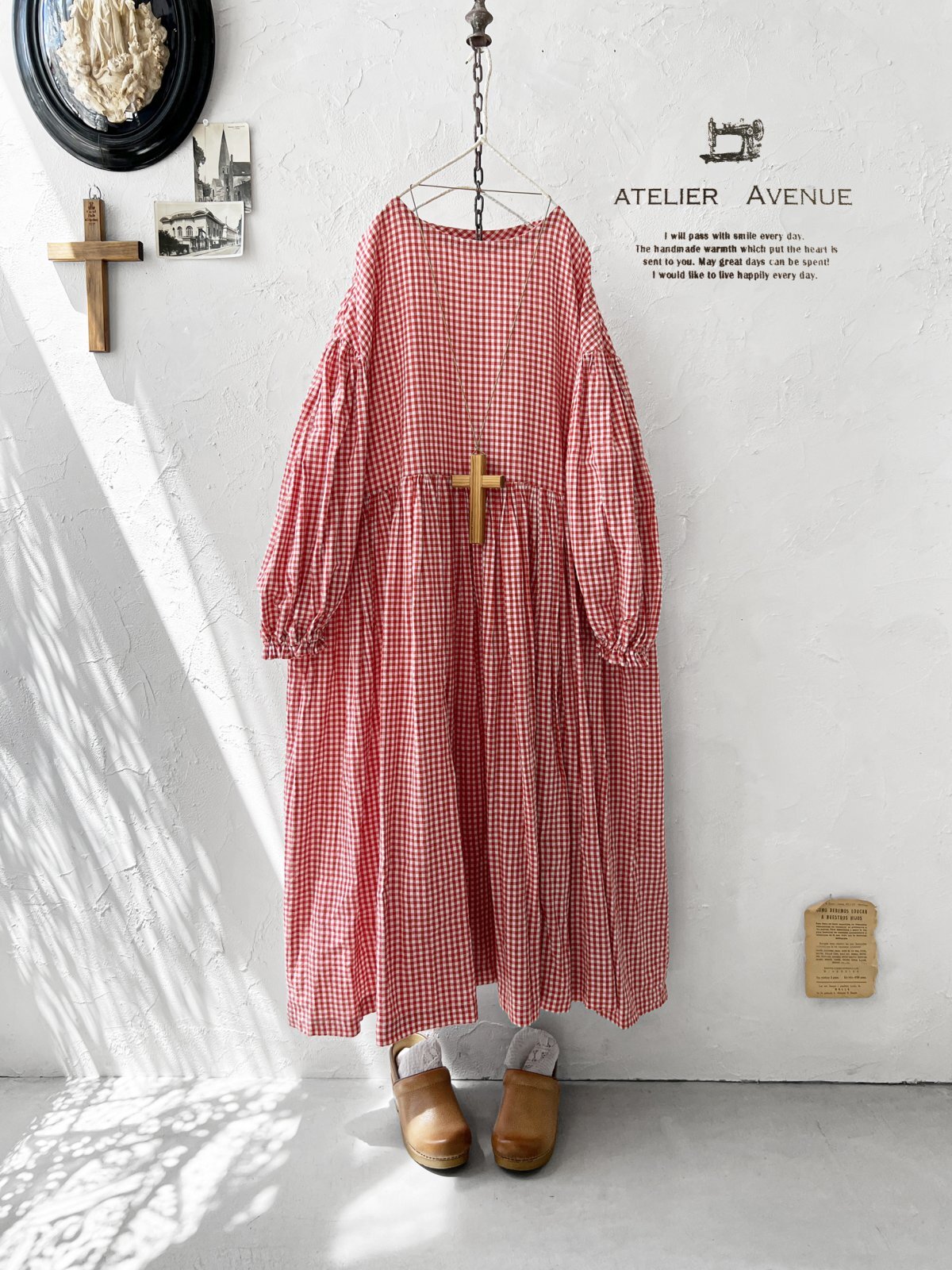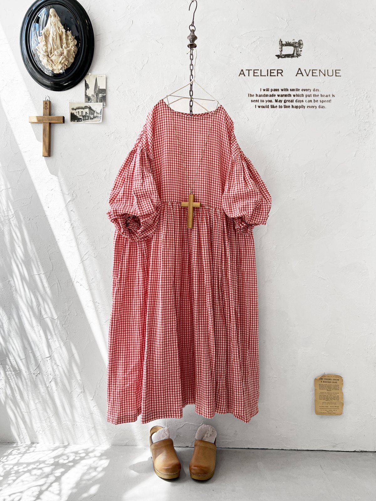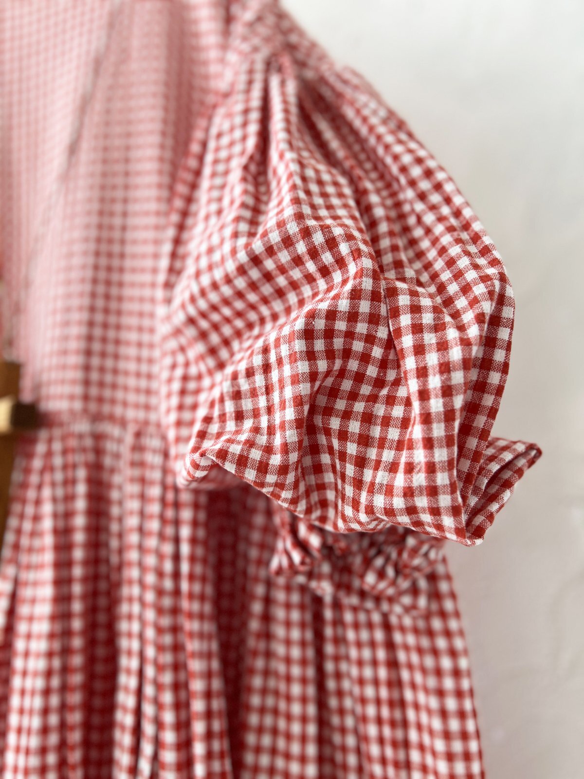 Avenue/パフ袖ギャザーワンピース・赤ギンガム [AVE250701]