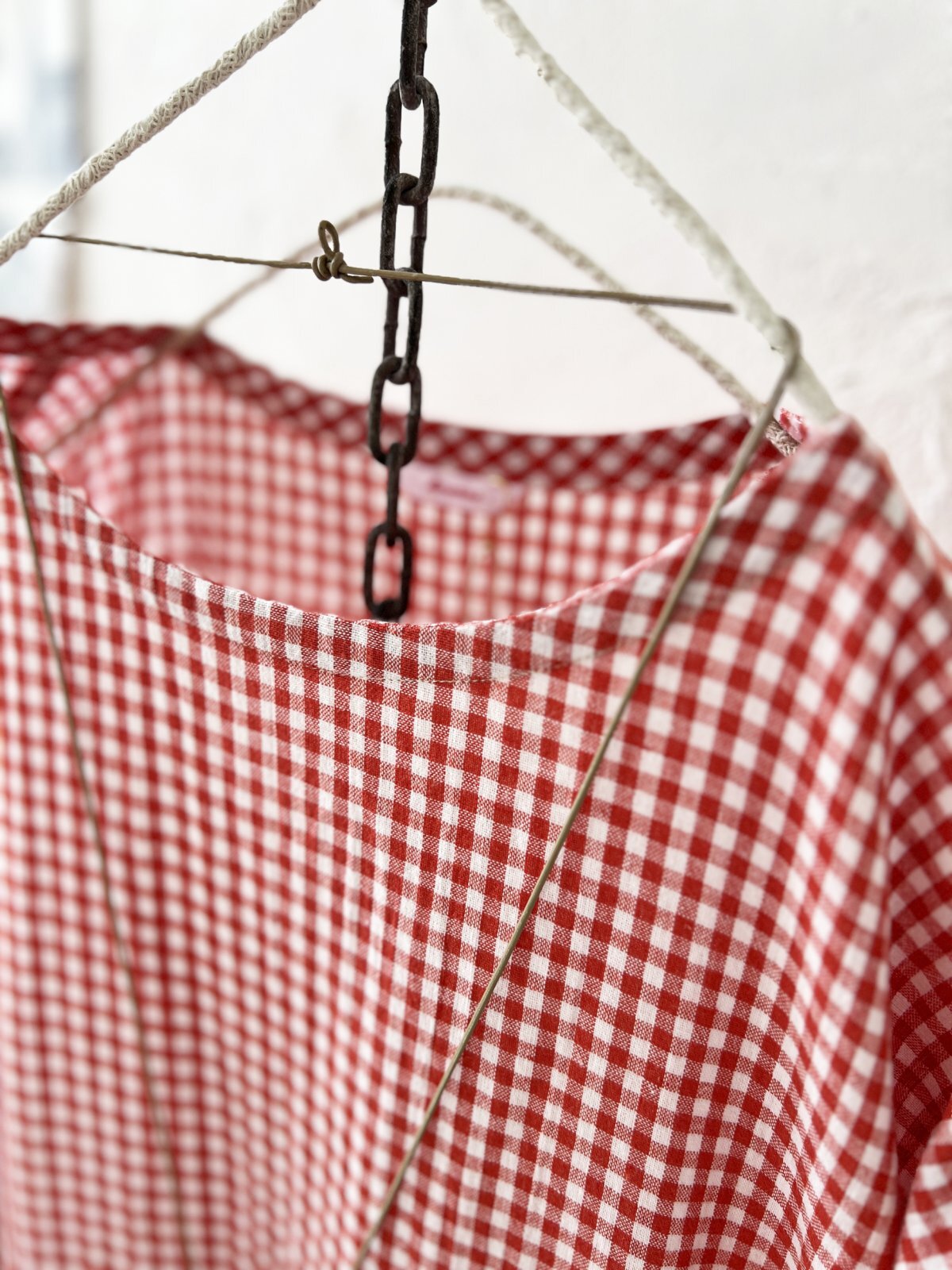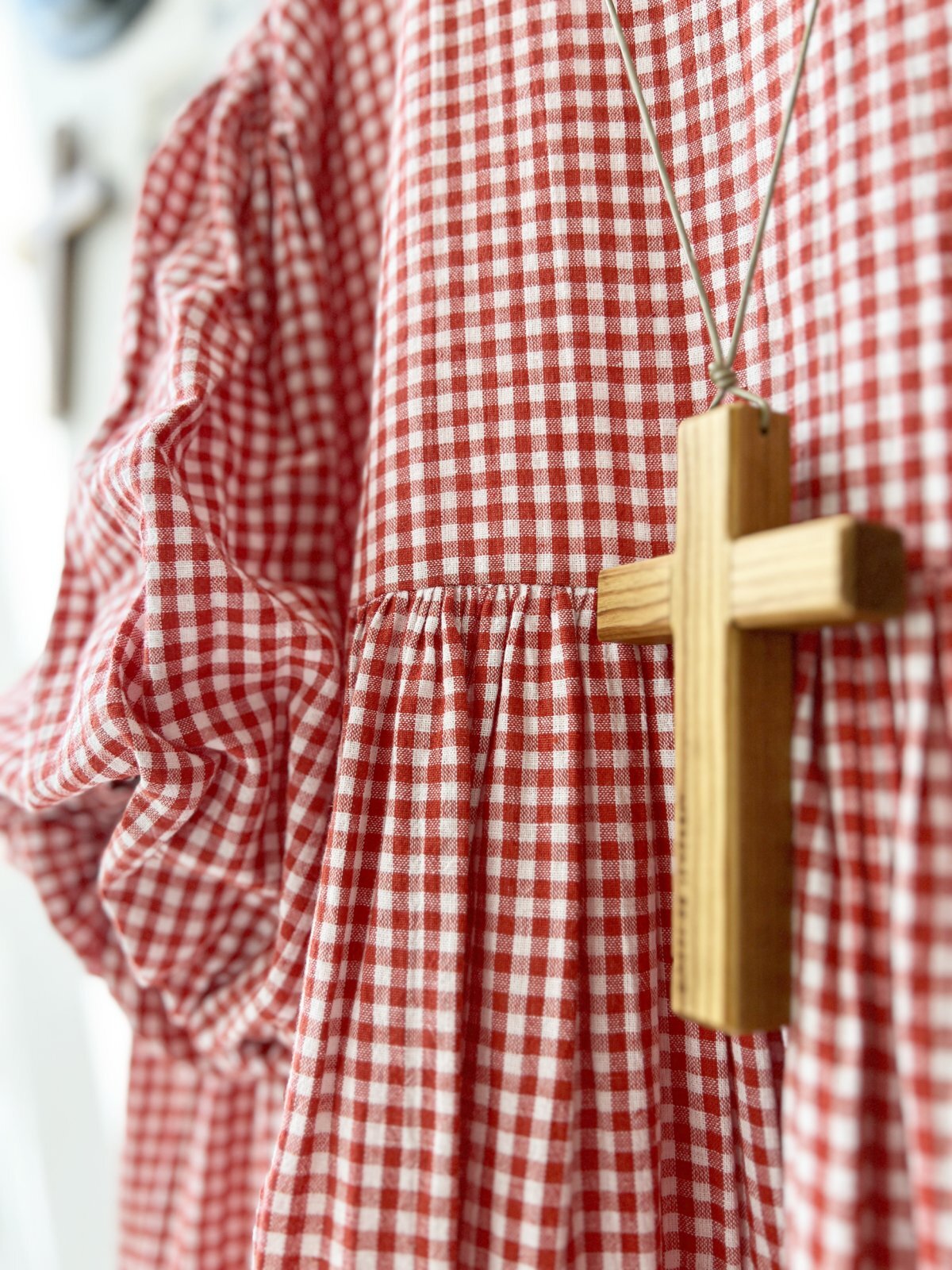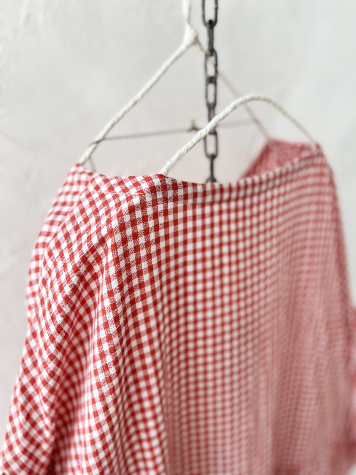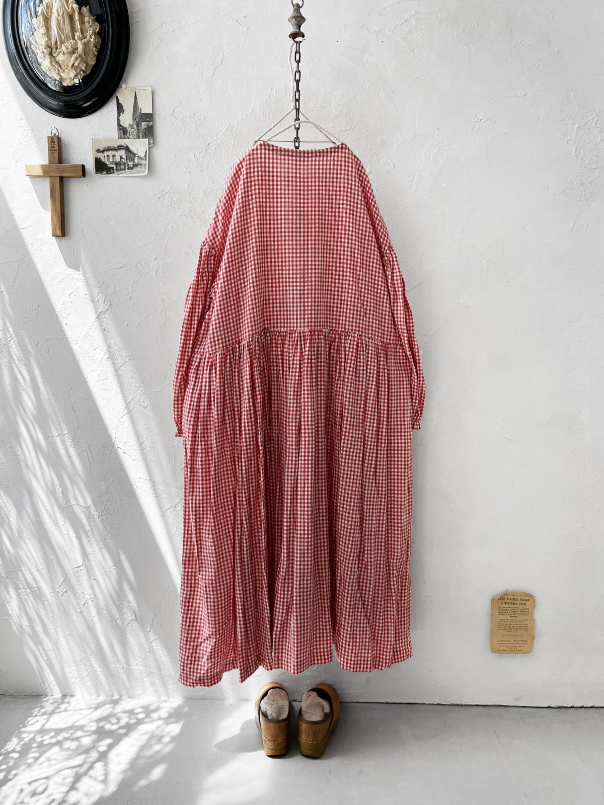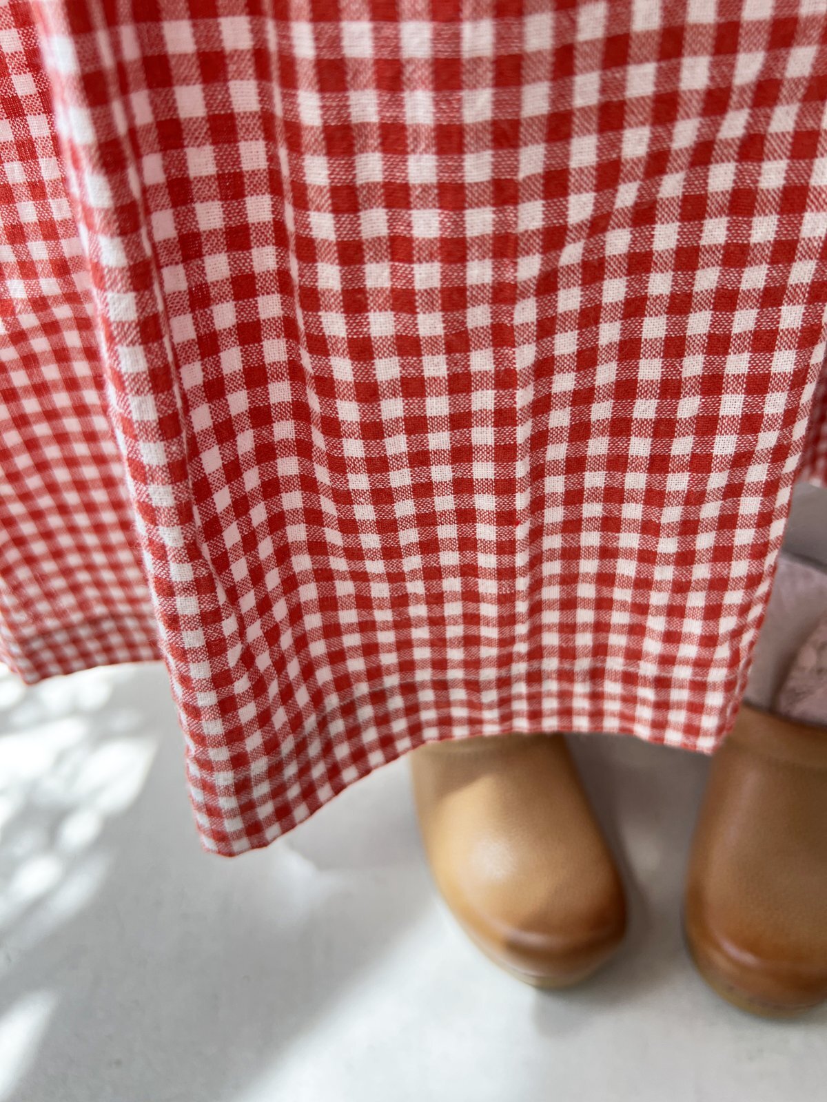 Avenue/パフ袖ギャザーワンピース・赤ギンガム [AVE250701]