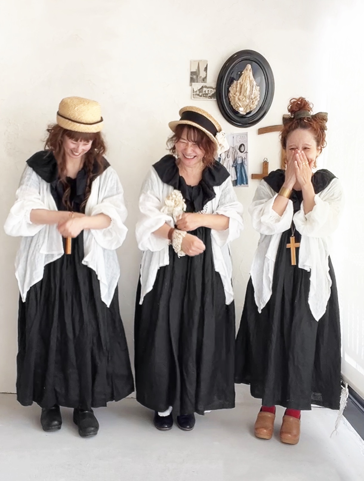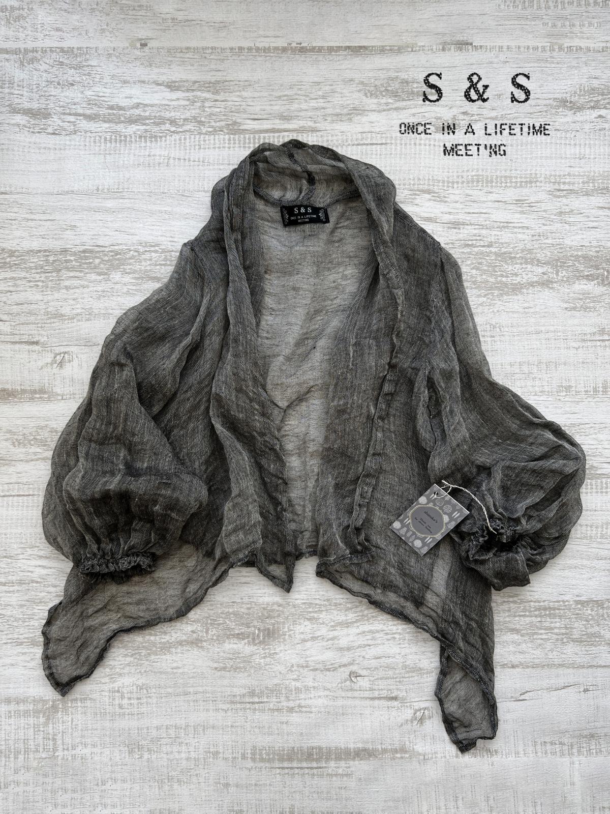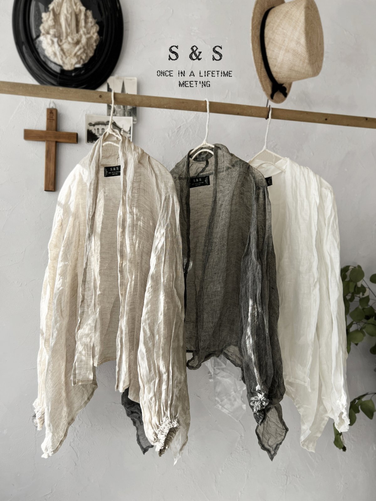 shizuka's/リネンガーゼのパフ袖ジレ・黒 [SIZ250802]