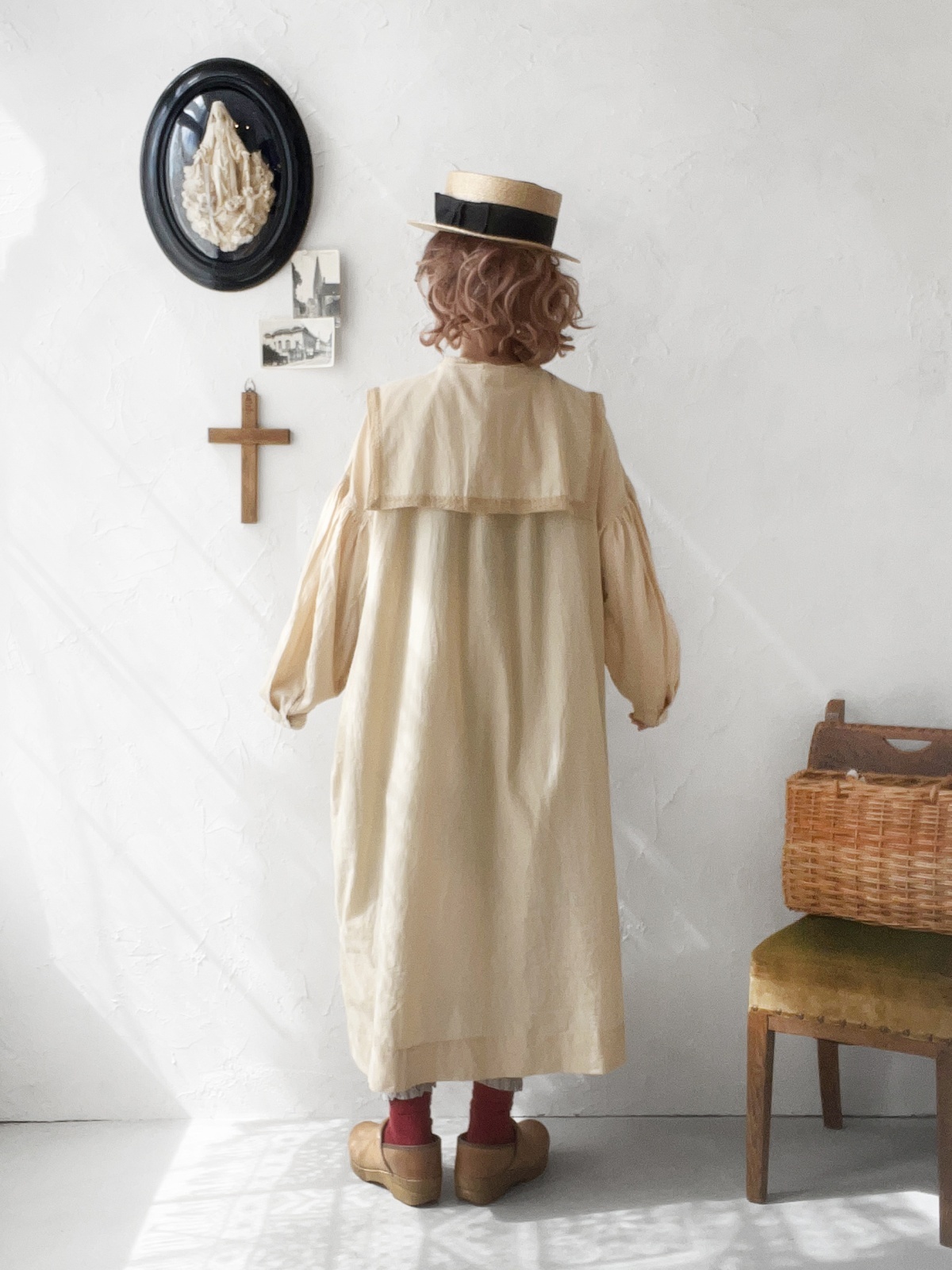 ワンピースはシンプルなノーカラーで、